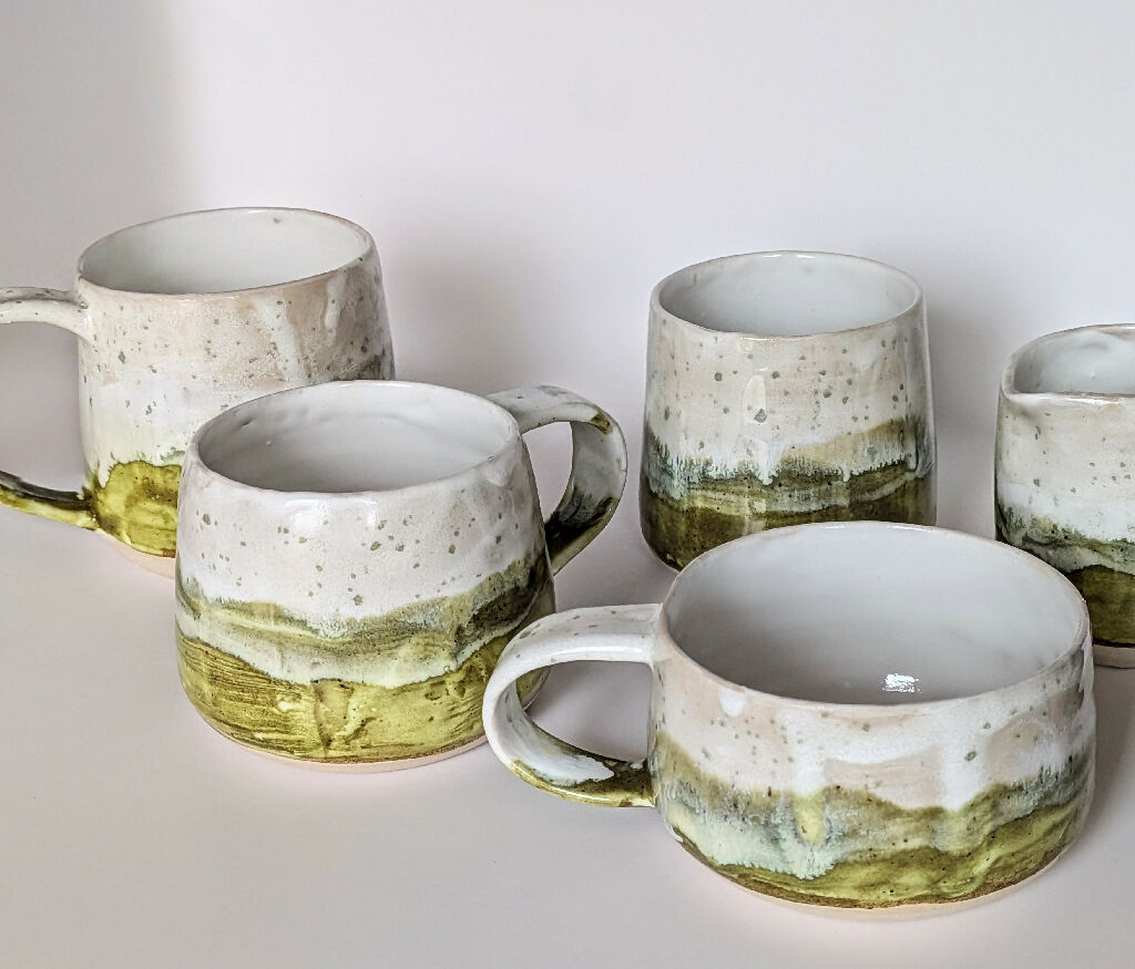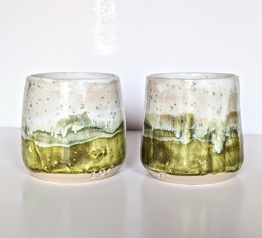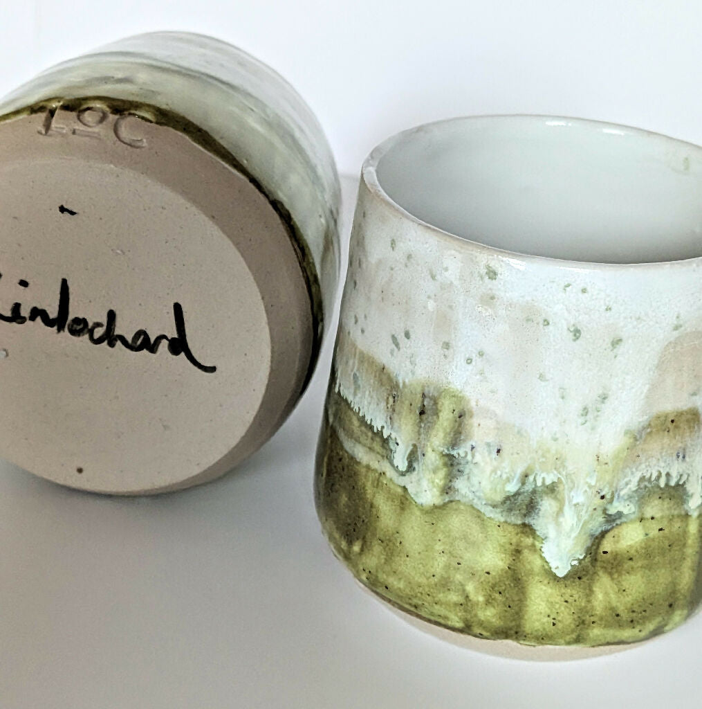 Finished in a rich green glaze scattered with light green speckles, this piece is part of the Moss & Blossom range. The surface echoes the look of soft moss catching fresh spring light, with gentle tonal variation that brings depth and an organic, living quality to the glaze. No two tumblers are ever exactly alike, making each one a truly unique work of functional art.