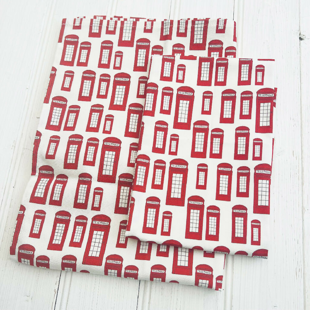 A eye catching organic cotton tea towel featuring Lottie’s hand drawn London Telephone Box design,