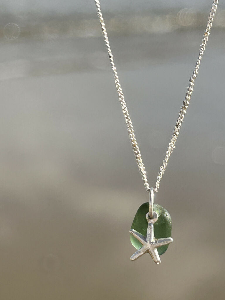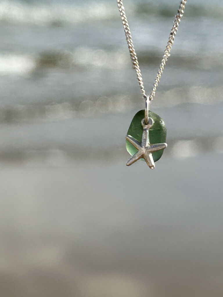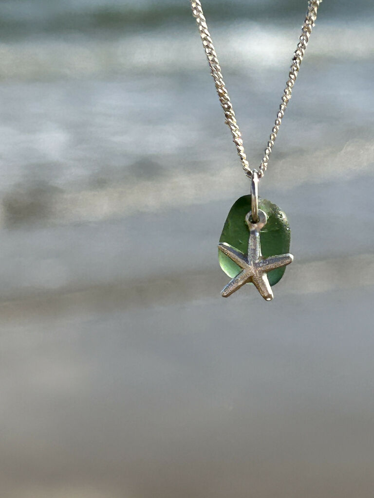 A genuine piece of naturally sea-tumbled seaglass, set by hand in a silver bezel.