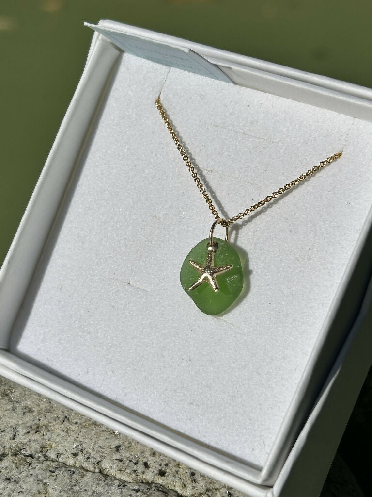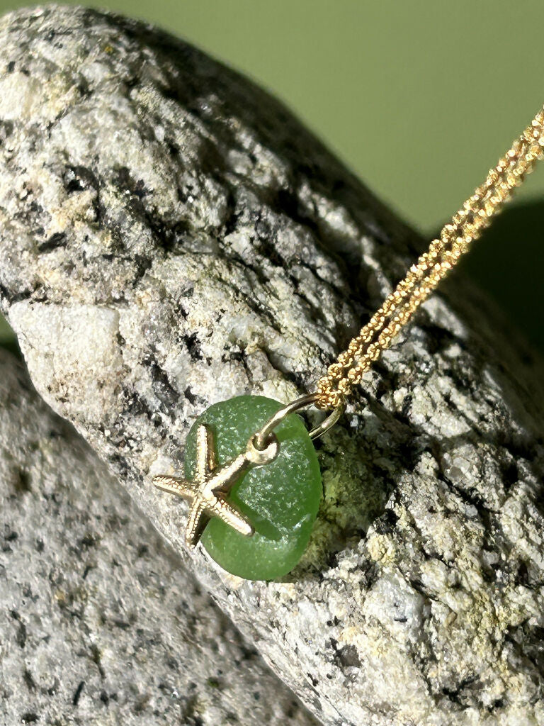 Seaglass, set by hand onto a 14ct gold filled necklace