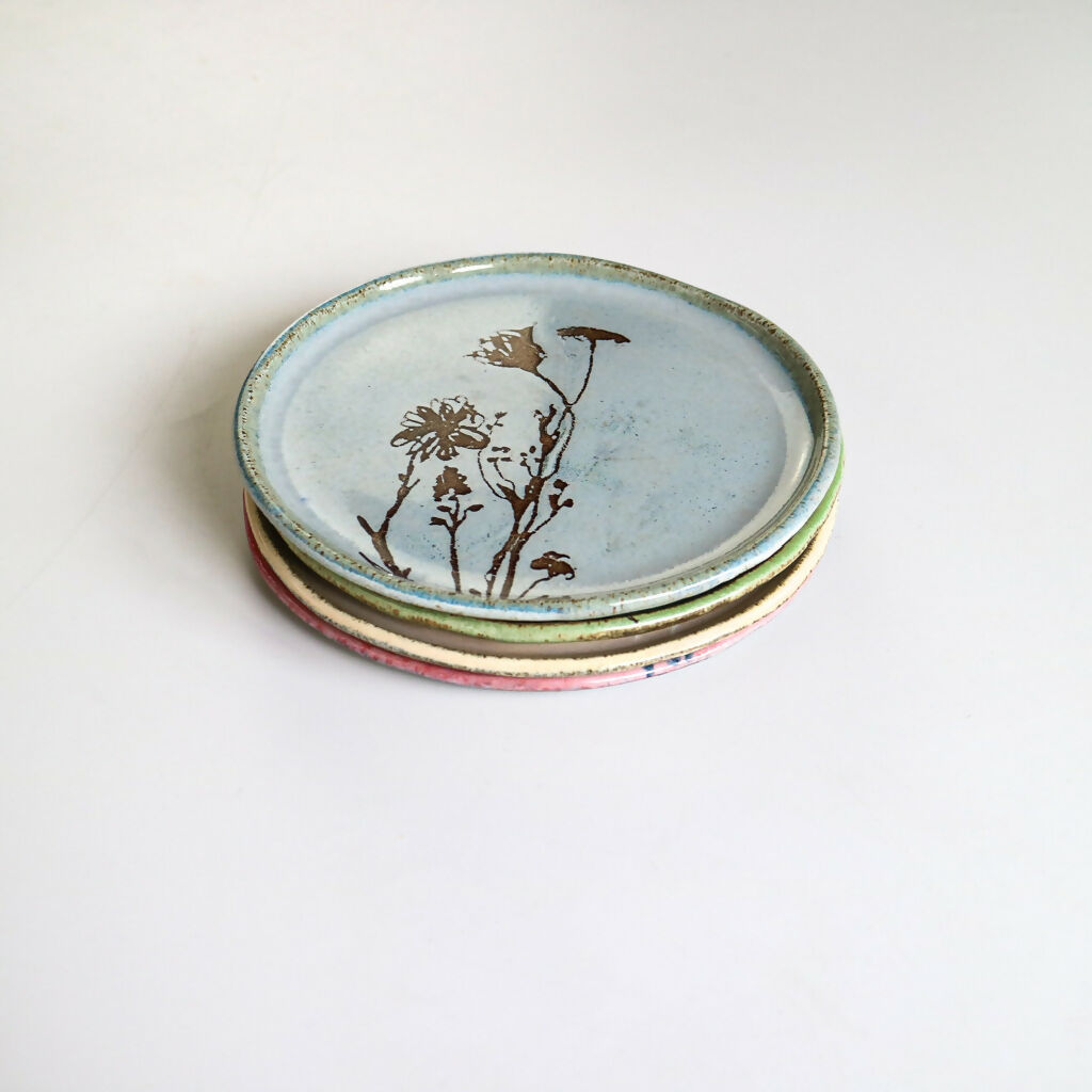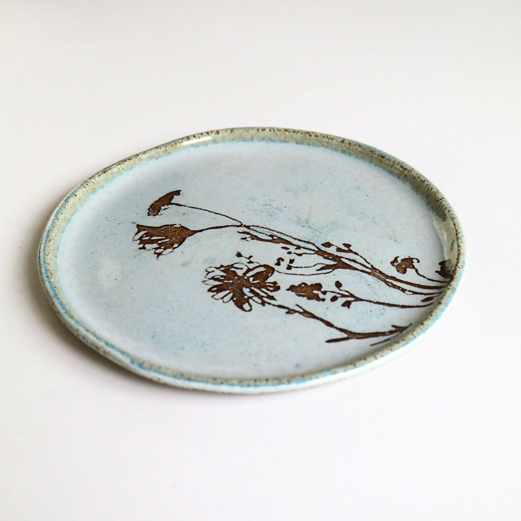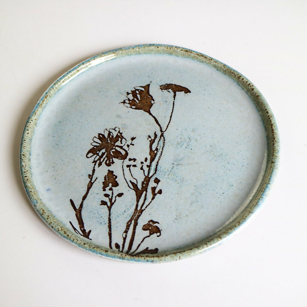 Featuring a soft blue glaze and my hedgerow flowers botanical design, this small dish inspired by nature adds handmade charm to any space.
