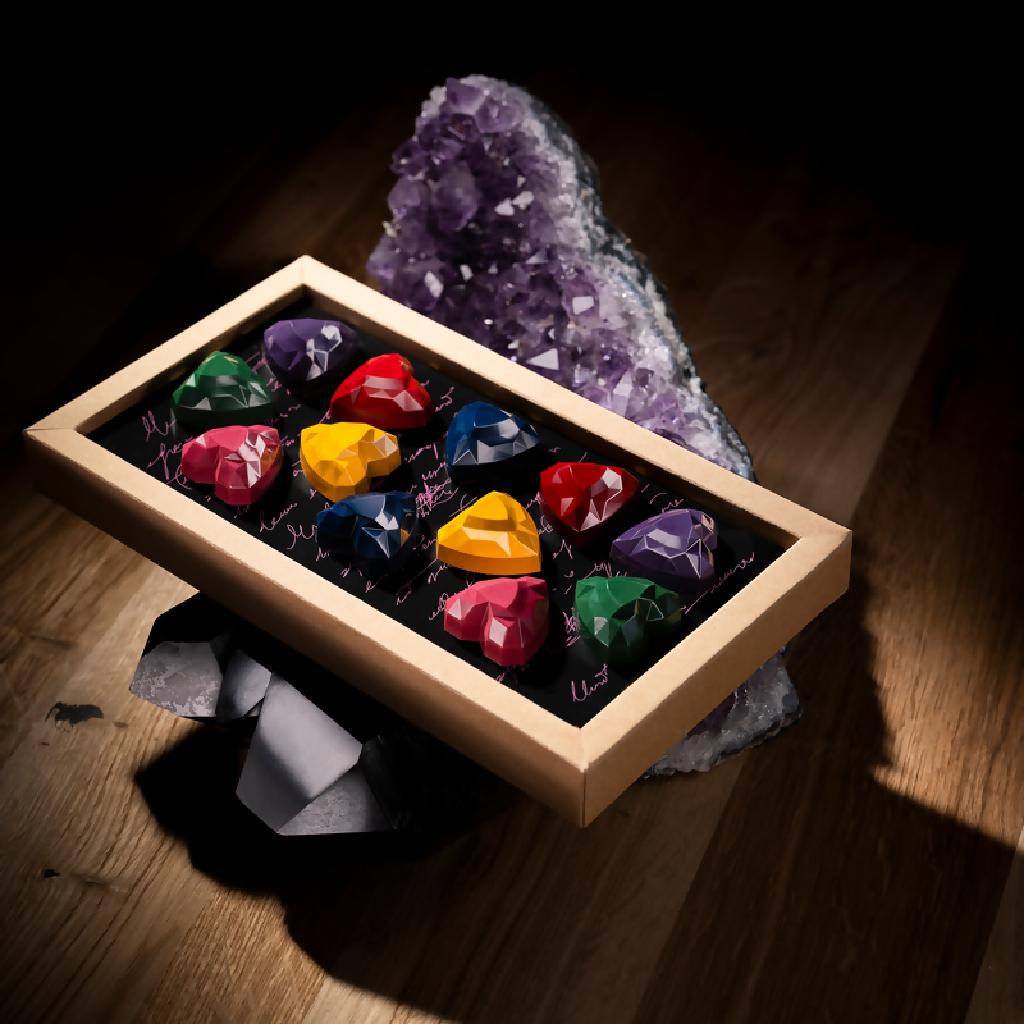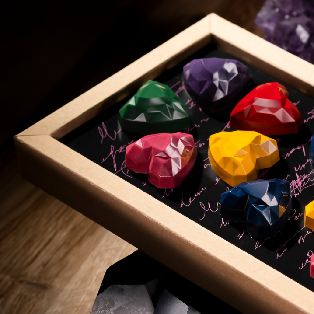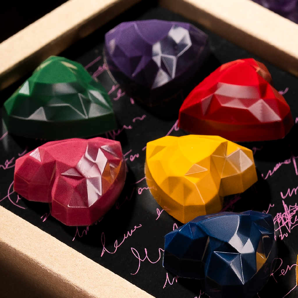 An elegant heart chocolate box for when words fall short. This box includes 12 handcrafted chocolate hearts in six expressive flavours, designed to feel thoughtful, personal, and quietly romantic.