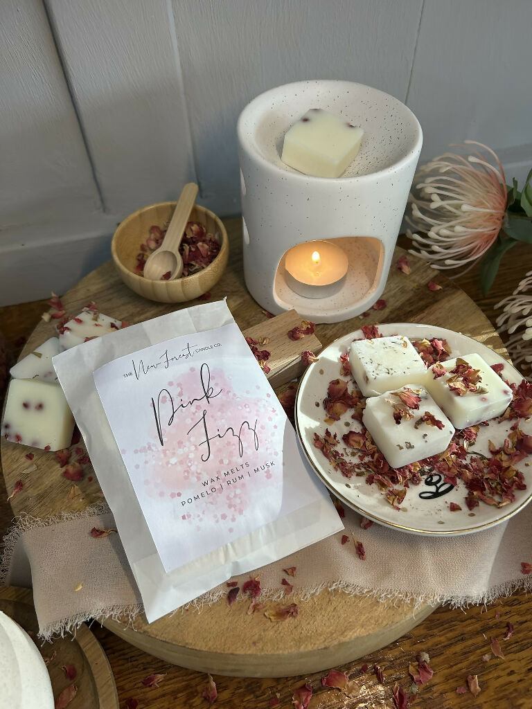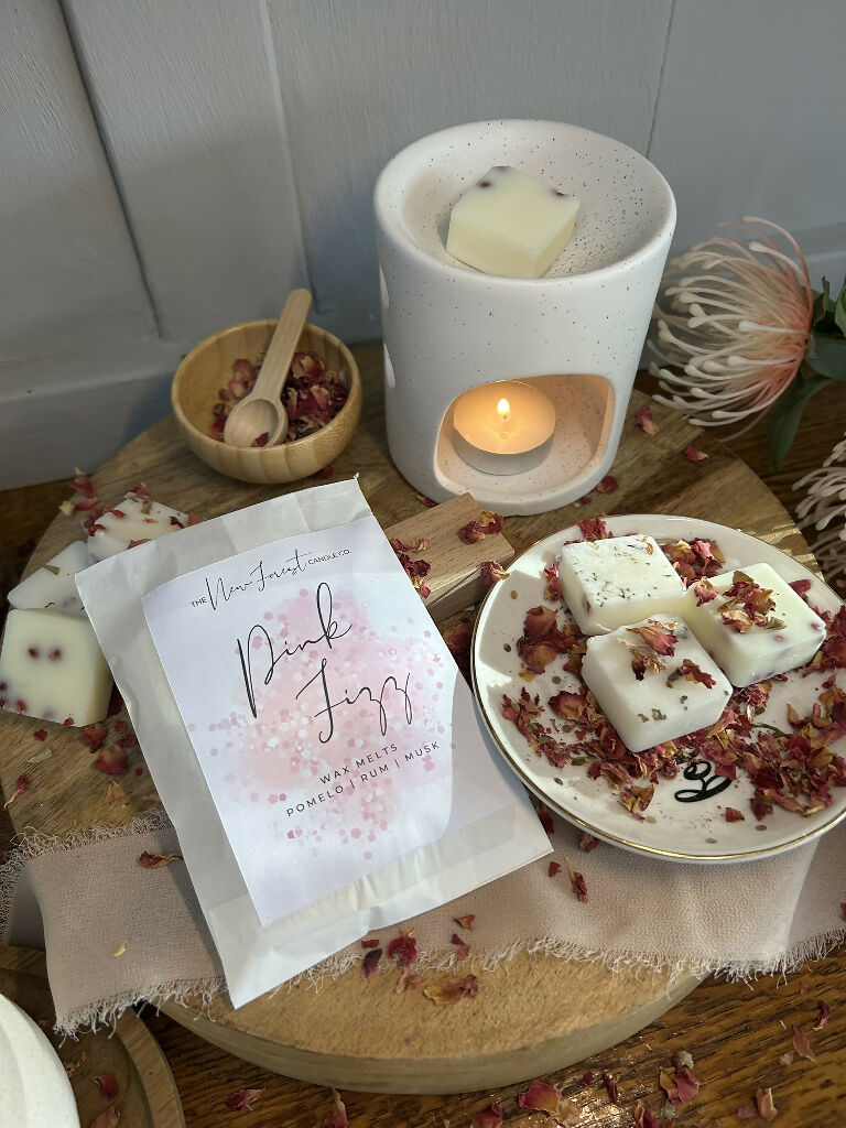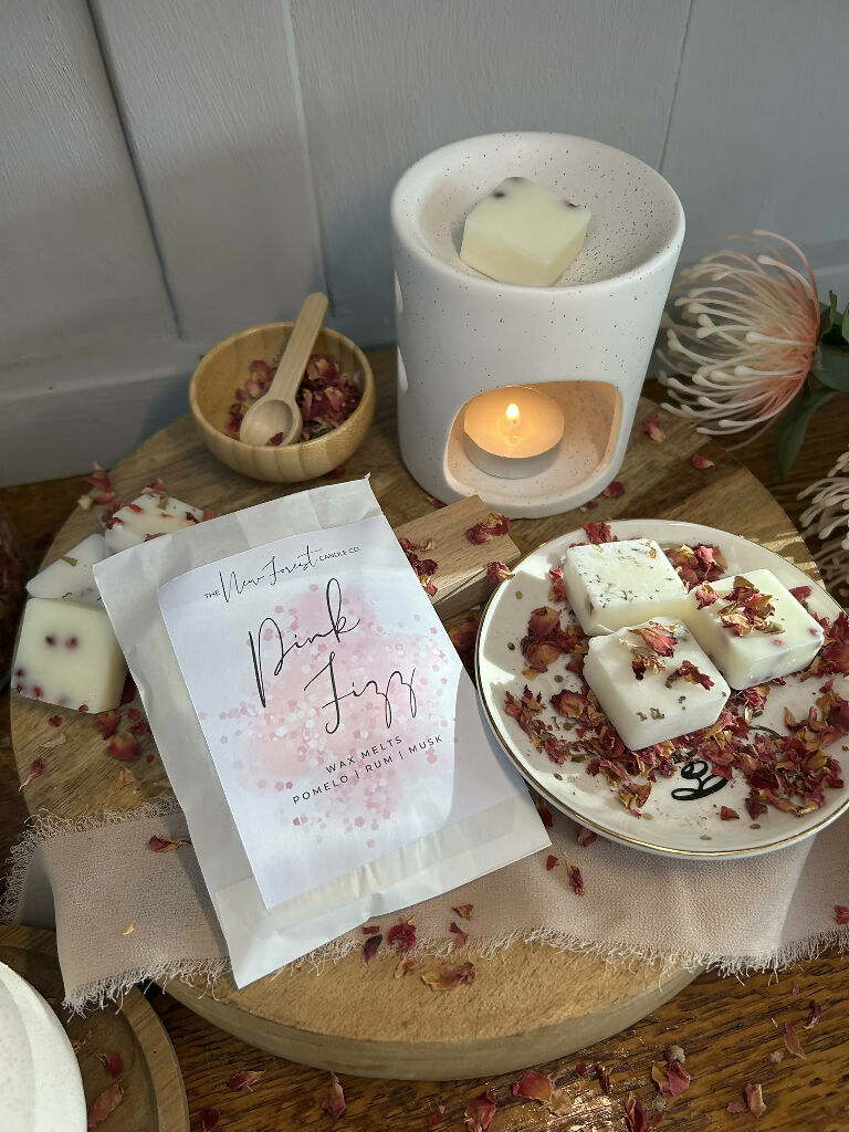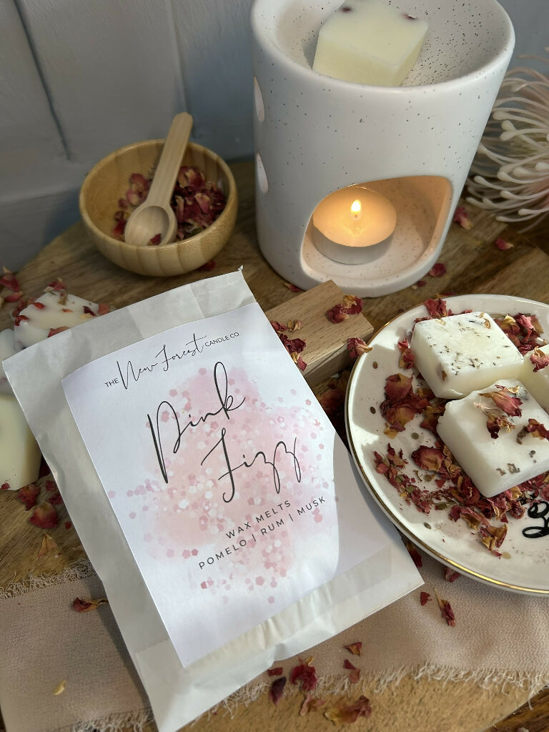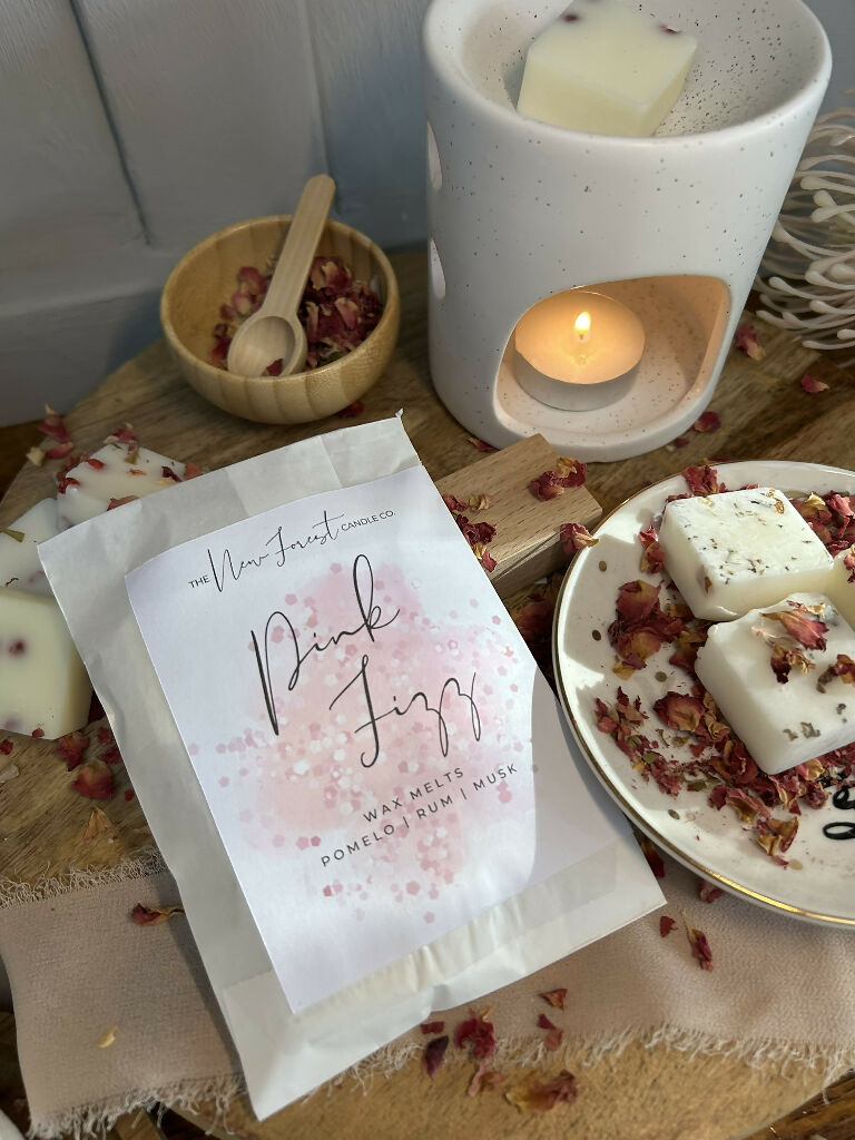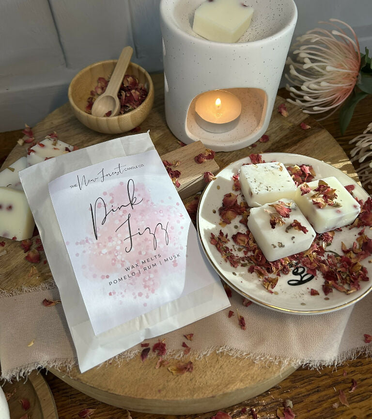 Pink Fizz Botanical Wax Melts, scented wax melts with decorative botanicals.
