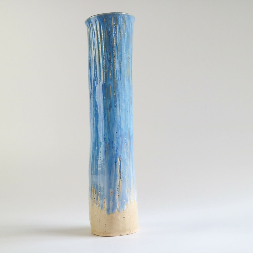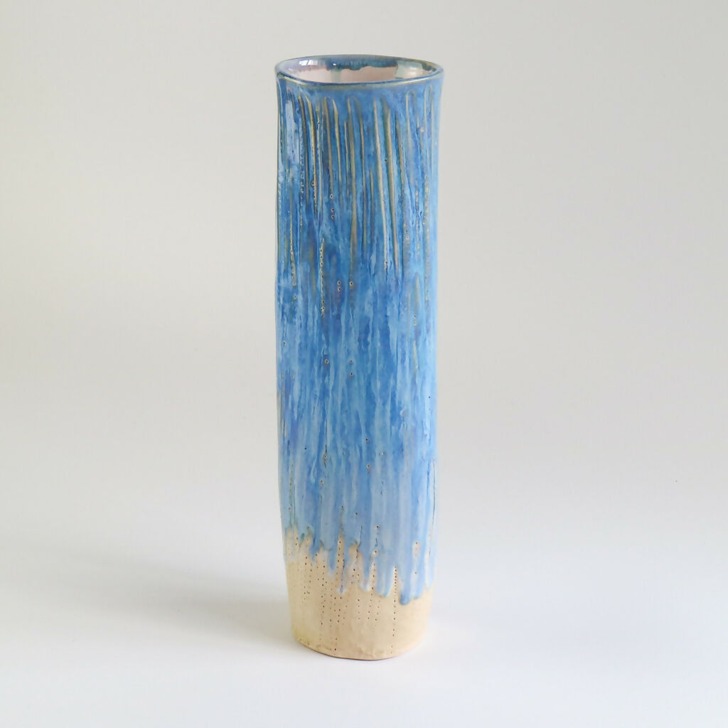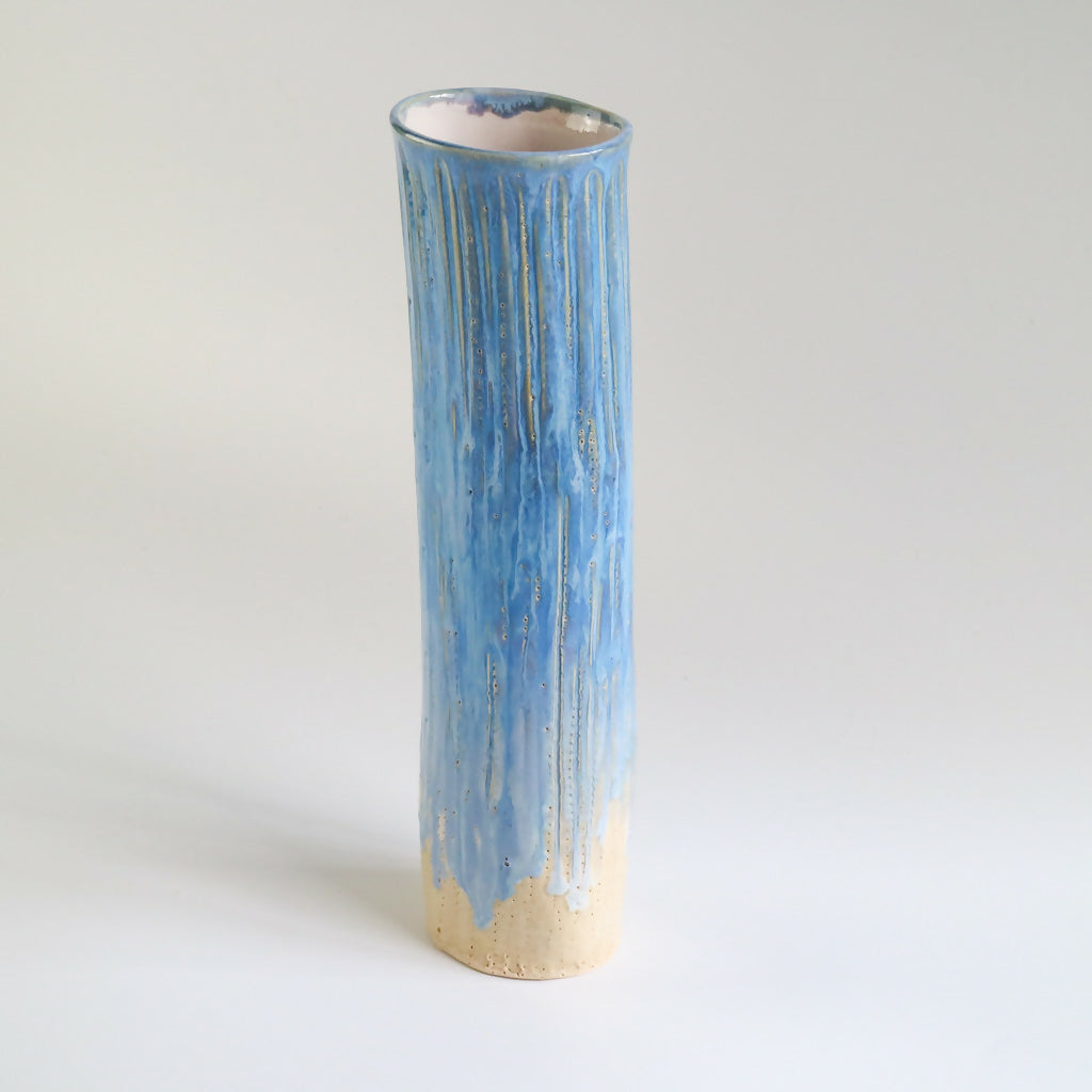 Inspired by the calming tones of the sea this handmade stoneware vase has been decorated with a rich surf blue glaze that flows and pools organically over the textured surface.