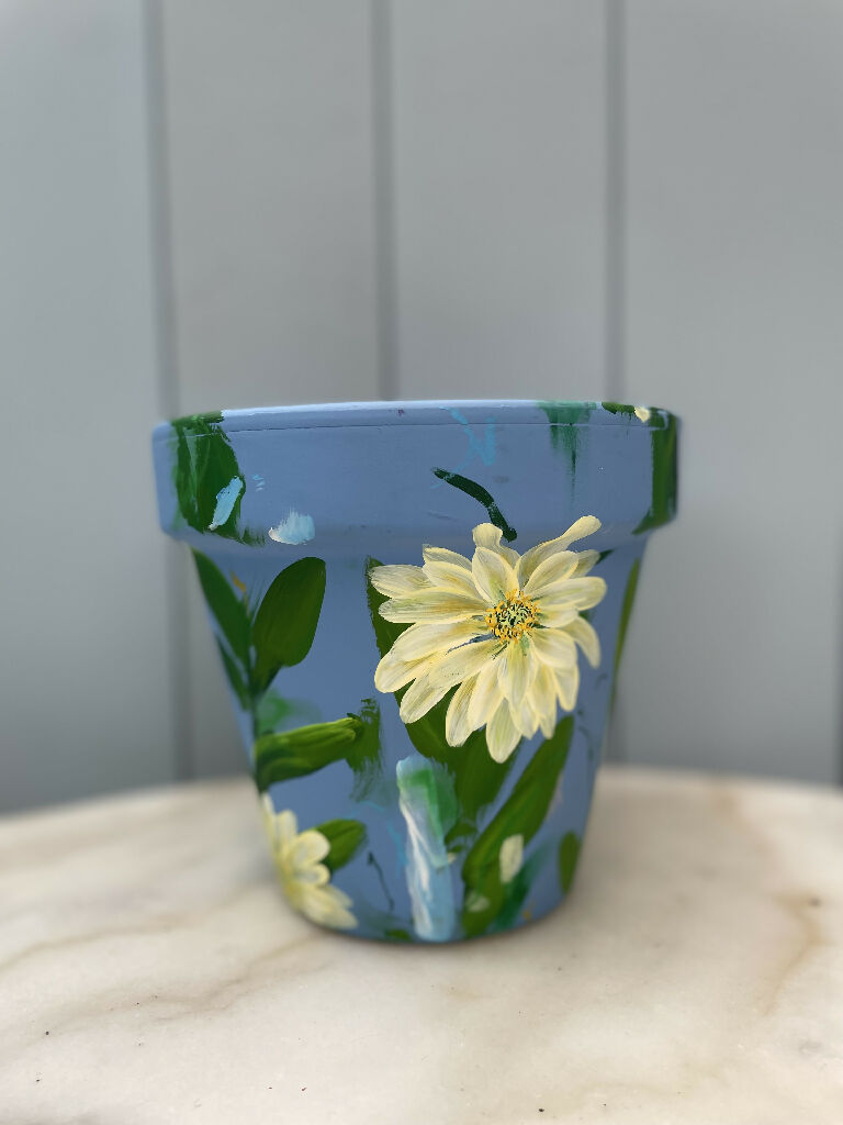 Kate‘s unique one of a kind hand painted pots are created to be treasured for years to come giving love and enjoyment to all. Each art piece is inspired by the language of flowers evoking special meanings and feelings.