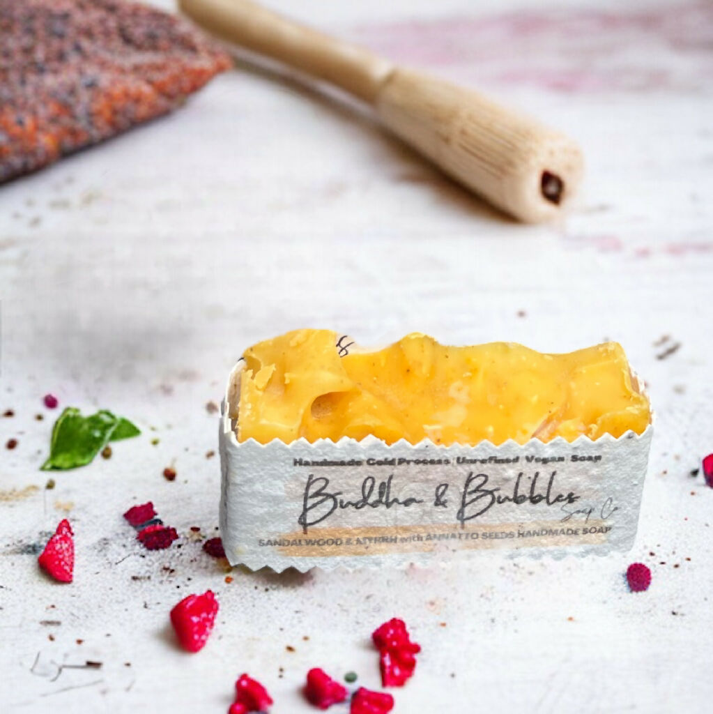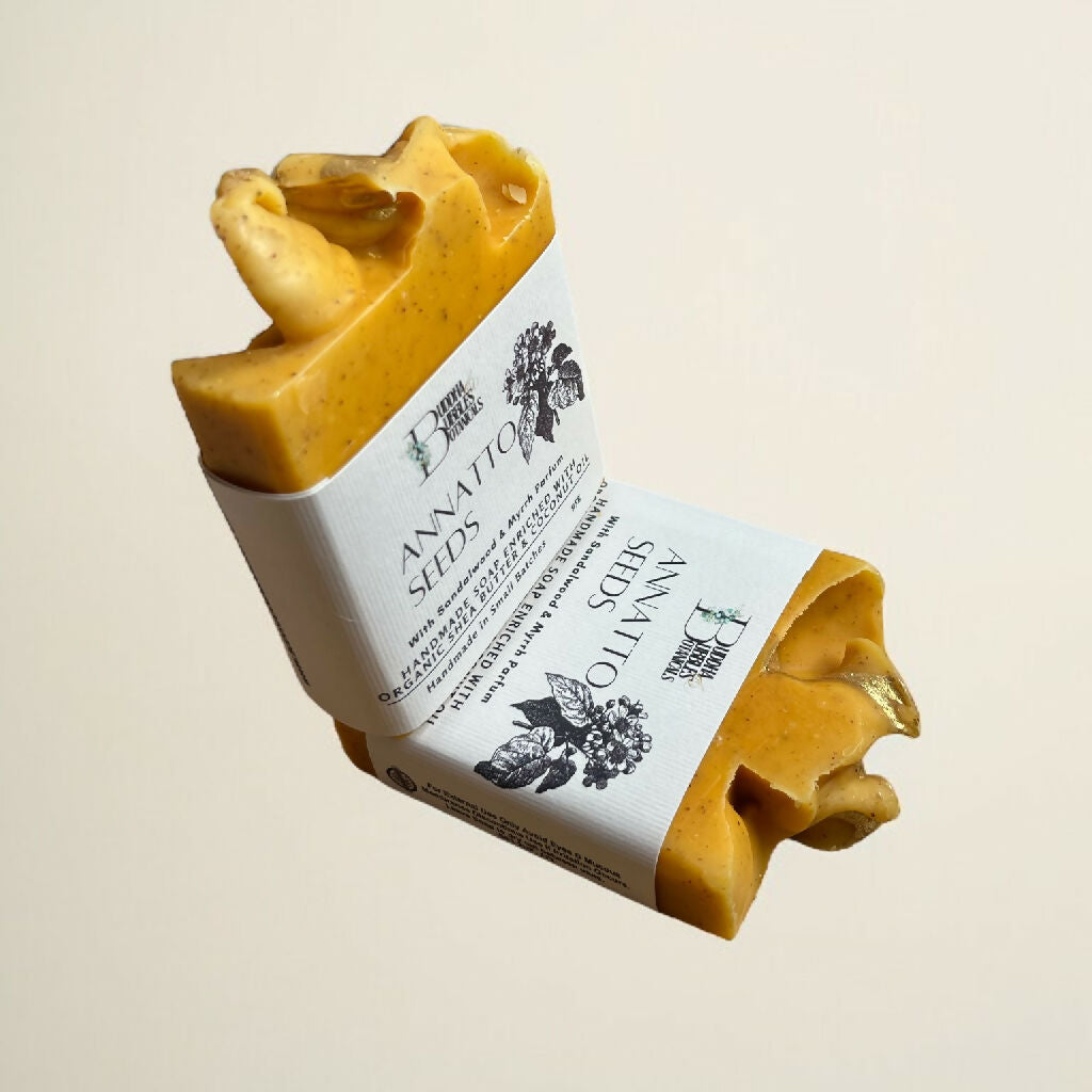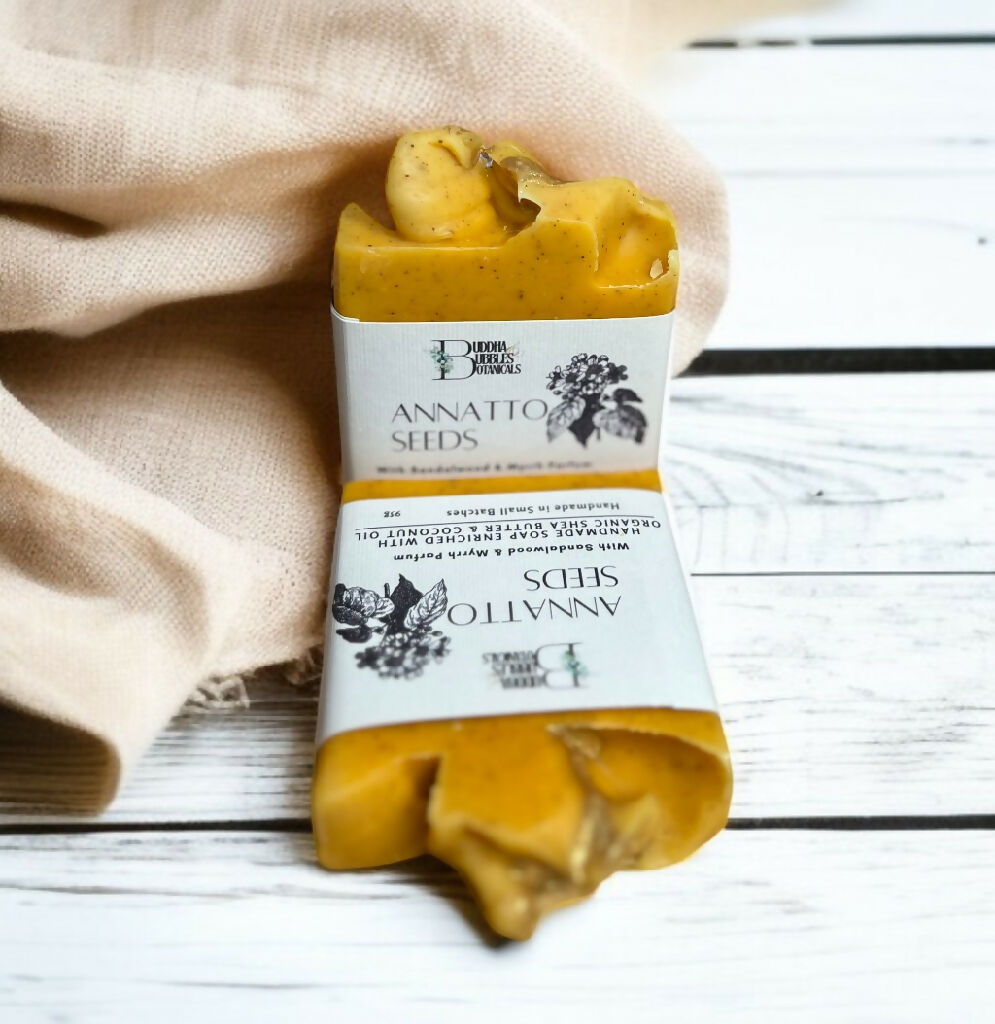 Annatto Seeds: We use Annatto Seeds as a natural, plant-based colourant to give the soap a beautiful, warm, deep orange hue.