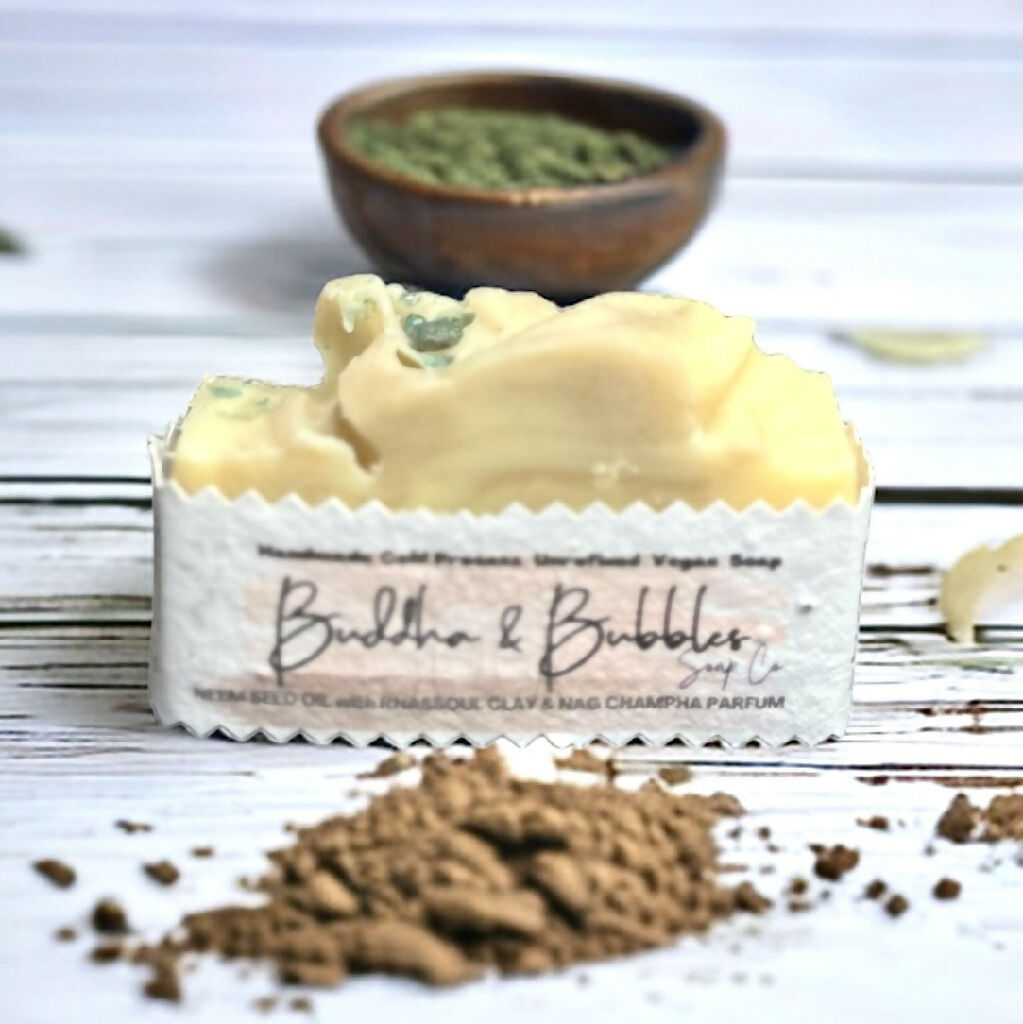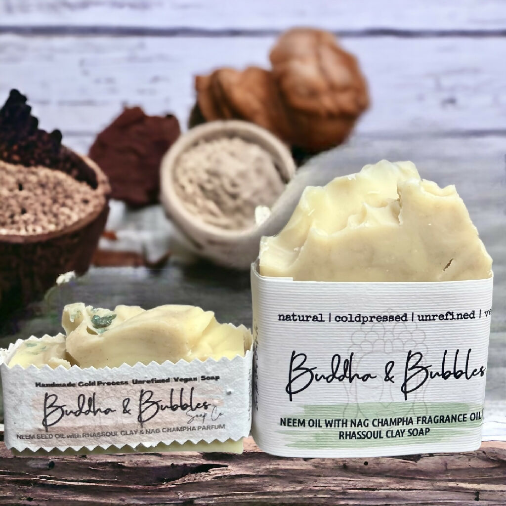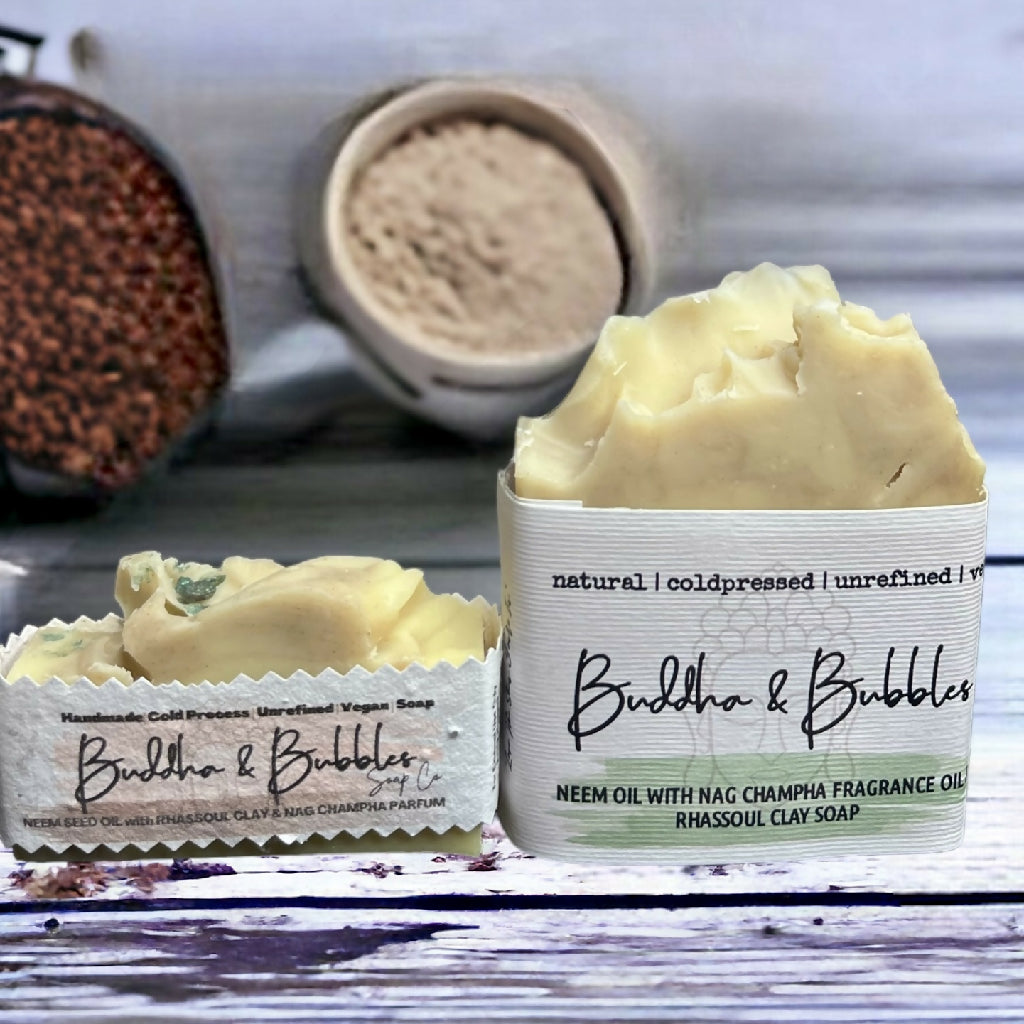 Soap Bar with Neem Seed Oil and Rhassoul Clay with Organic Shea and Coconut Oils Small and Large Size