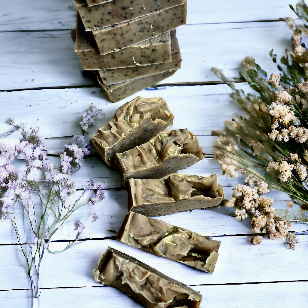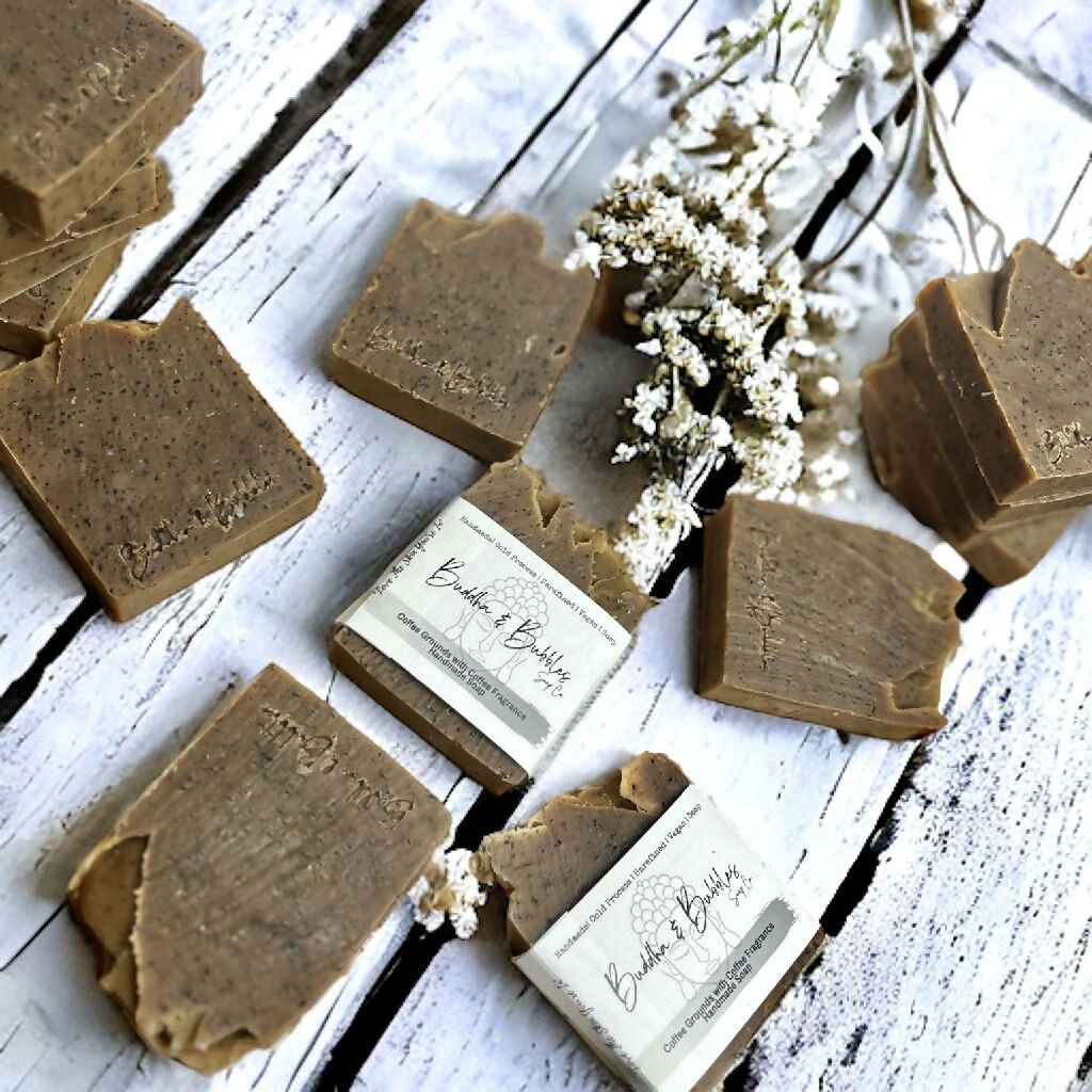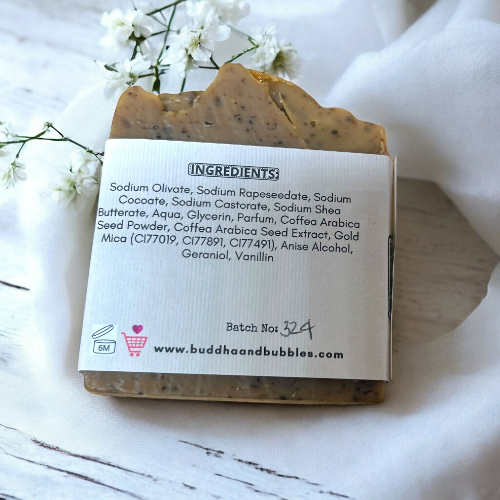 Awaken and exfoliate your skin with our gender-neutral, upcycled Coffee soap. Naturally coloured and scented with subtle coffee notes, this gentle, handmade bar buffs away dead skin for a fresh feel. Available in small and large sizes. Enriched with Organic Shea and Coconut Oil.