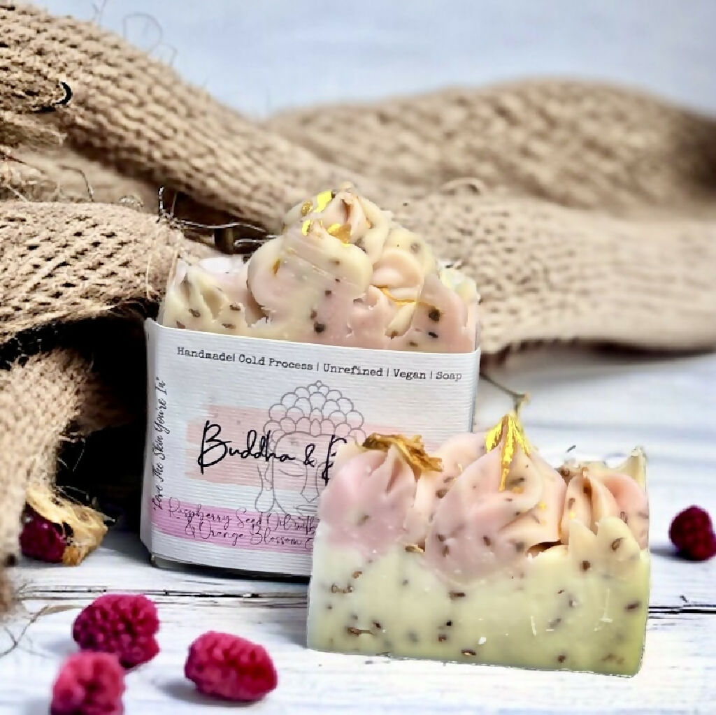 Soap Bar with Upcycled Raspberry Seeds with Frankincense, Orange Blossom & Neroli Small and Large Size
