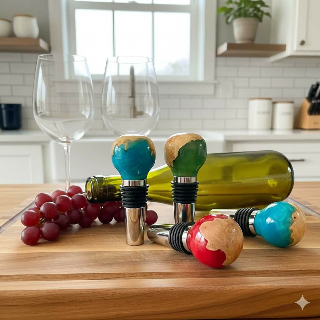 The perfect gift for wine lovers who appreciate craftsmanship. Each of these bottle stoppers is hand-turned in Yorkshire from unique hardwood burr and resin, featuring distinct ...