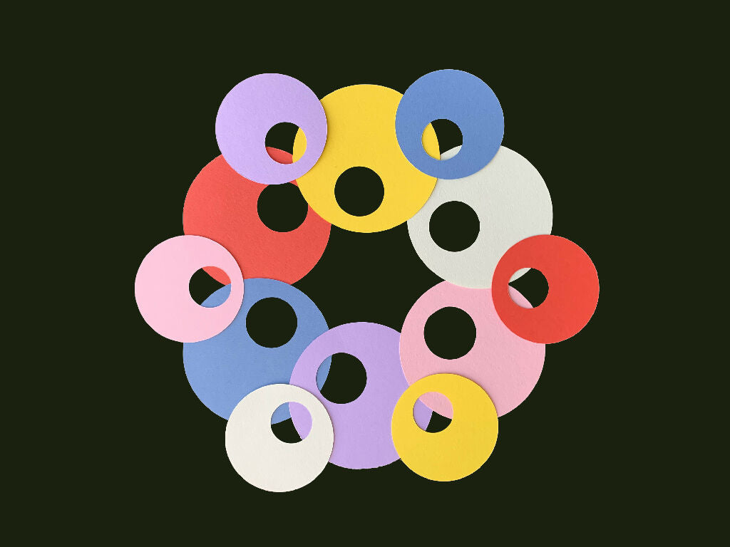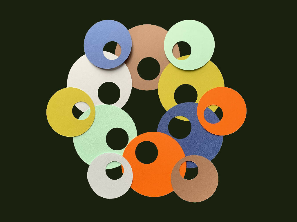 12 circle gift tags.Minimal design, 6 colours, 2 sizes. 9cm and 6.5 cm in diameter.Hand made