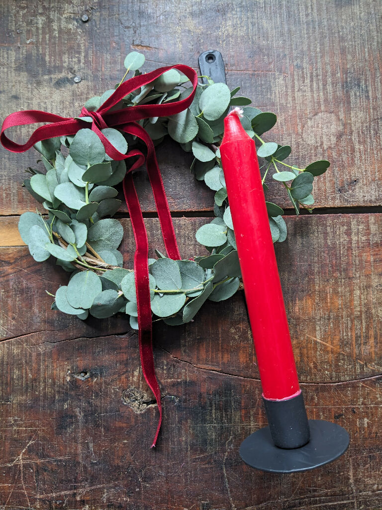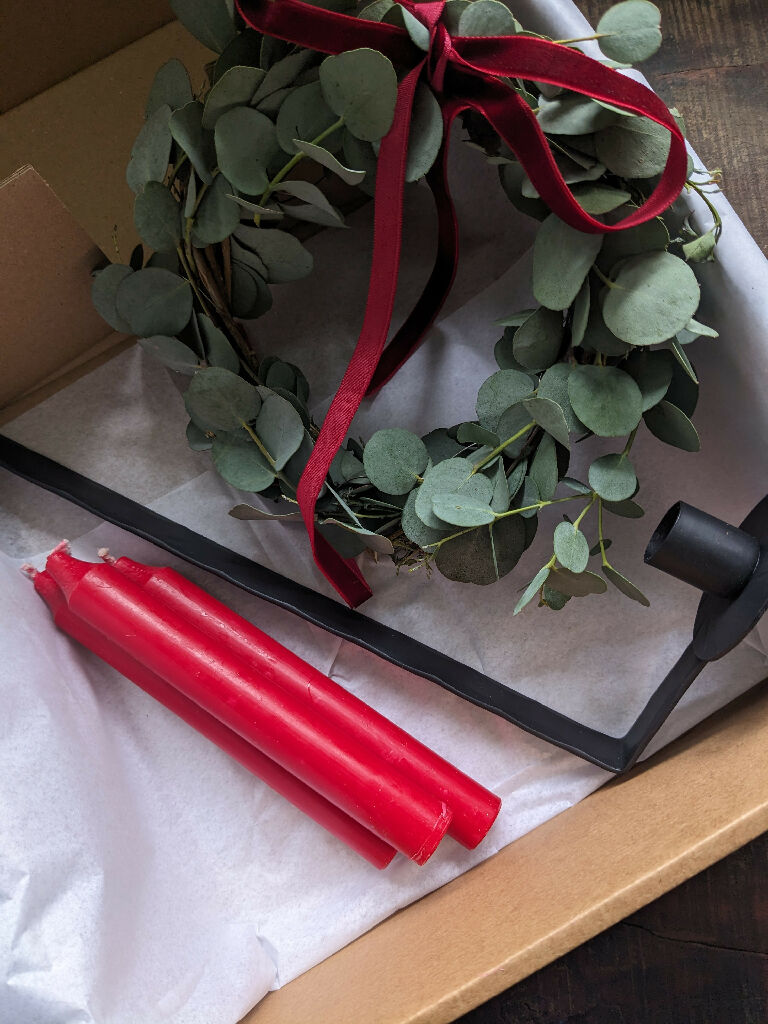 Christmas Gift Set – Eucalyptus Wreath, Candle & Iron Candle Holder