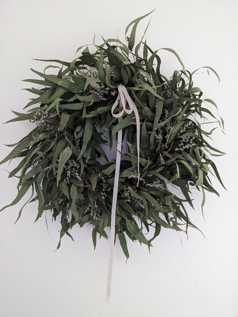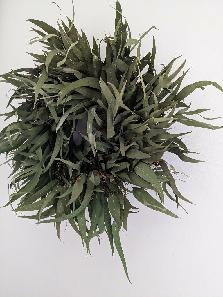 Handmade Dried Eucalyptus Wreath – 45cm. Bring the calm, natural beauty of eucalyptus into your home with this handcrafted dried wreath. Made entirely from natural eucalyptus br...