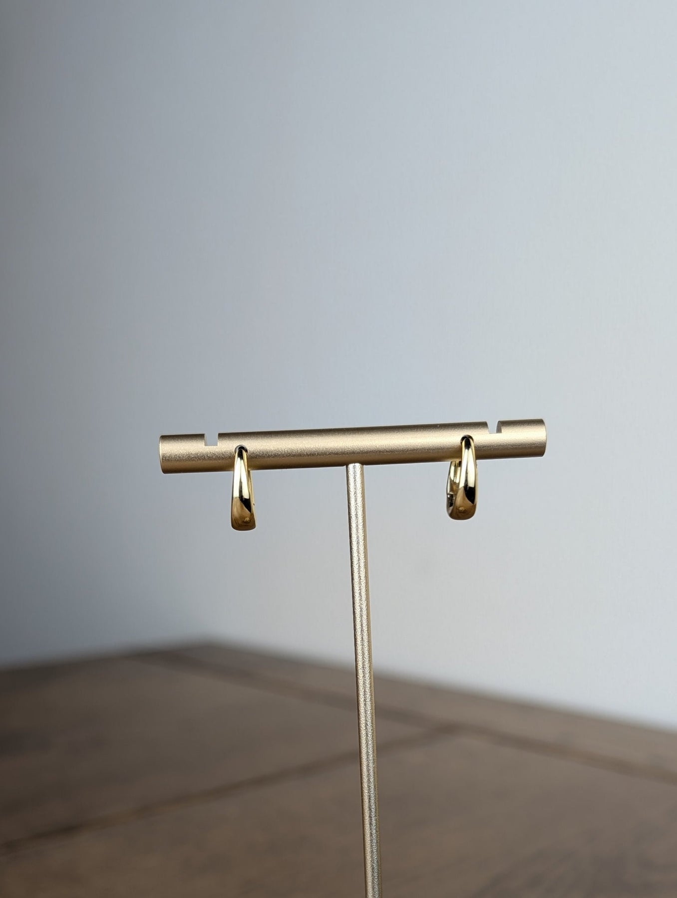 These water drop shaped gold huggie hoops are fluid, balanced, and made to move with you every day. The click-close hinge sits one-third of the way back, reducing wear on the joint and keeping the closure clean, secure, and almost invisible.