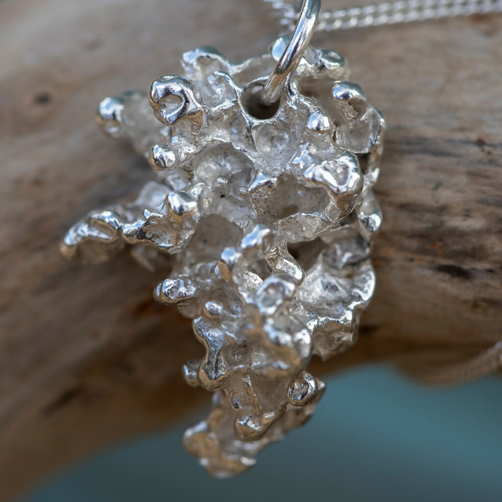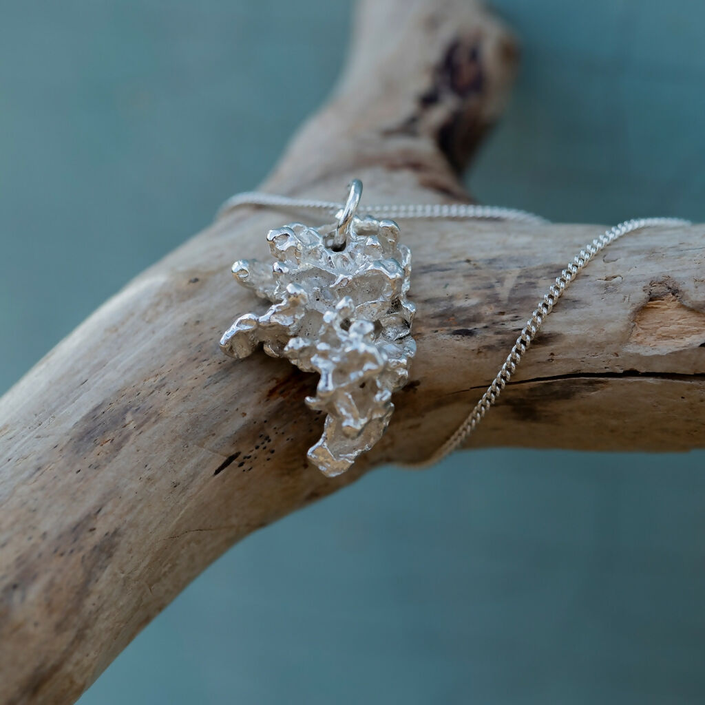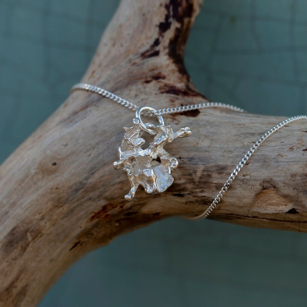 The images show a variety of these salt cast pendant necklaces to give you an idea of some of the shapes that come out when I cast into salt, but your pendant will be completely unique and I cannot tell you exactly what it will look like until it’s cast!