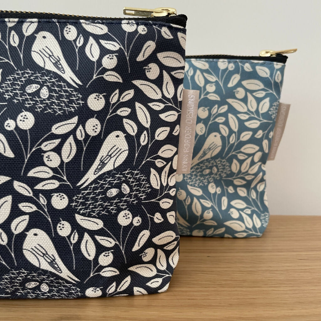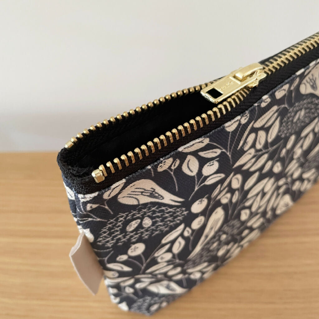 Cosmetic Bag Zip Bird in a Nest Midnight Blue