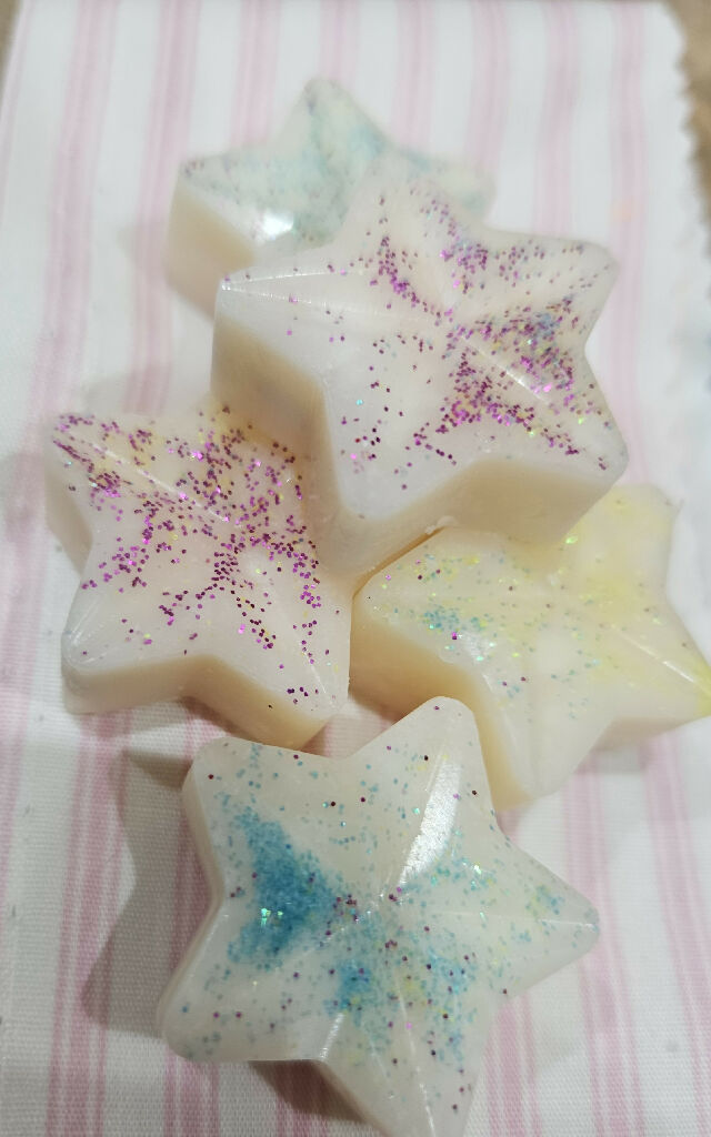 Hand-poured using natural soy wax, each melt is shaped into charming stars and hearts and lightly sprinkled with glitter for a subtle touch of sparkle. Perfect for adding a little magic to everyday moments or gifting someone special.