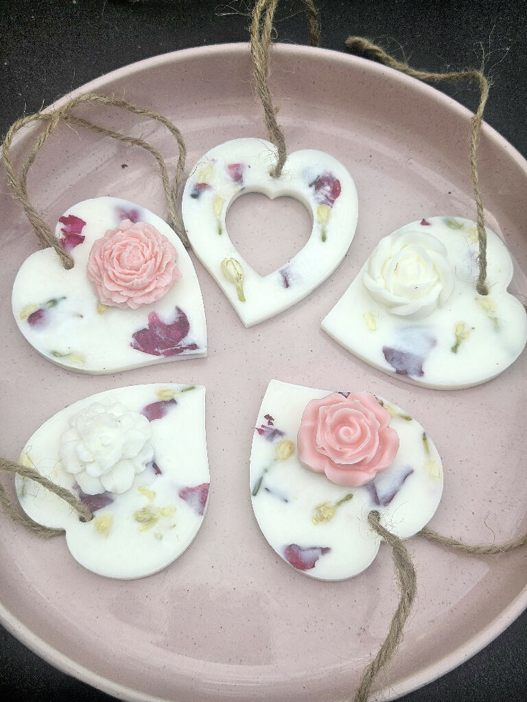 Champagne & Roses - Handcrafted botanical soy wax heart hangers