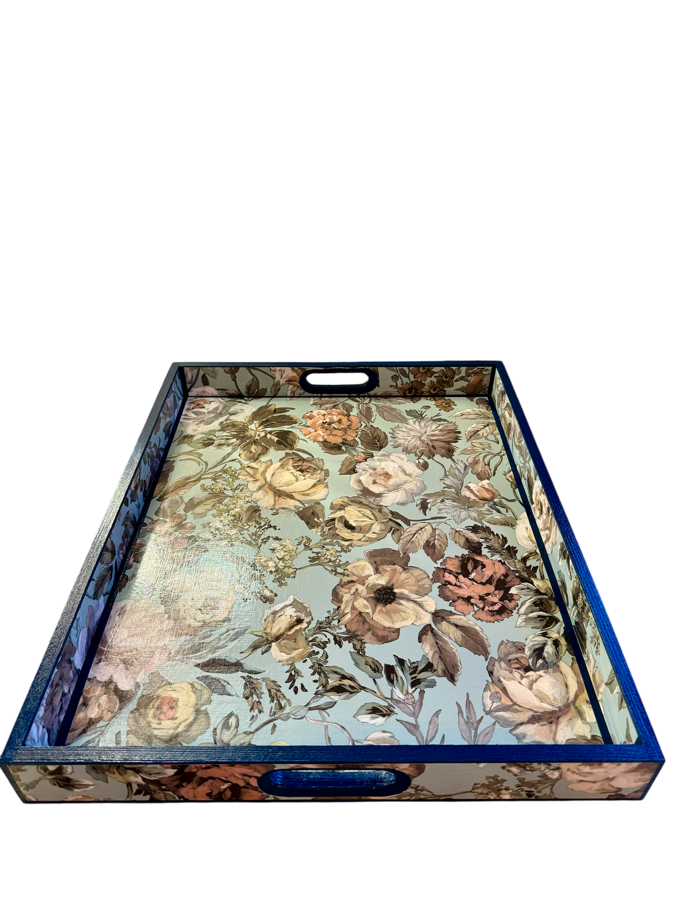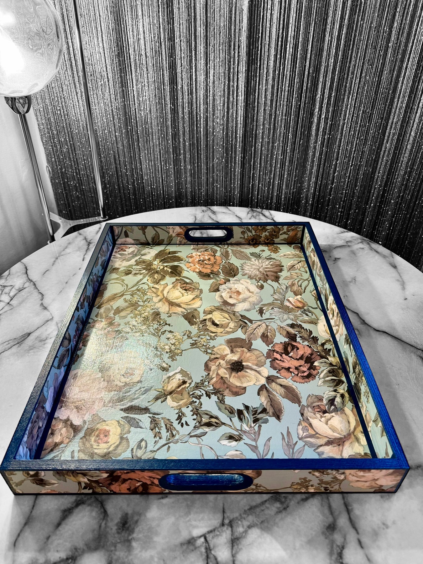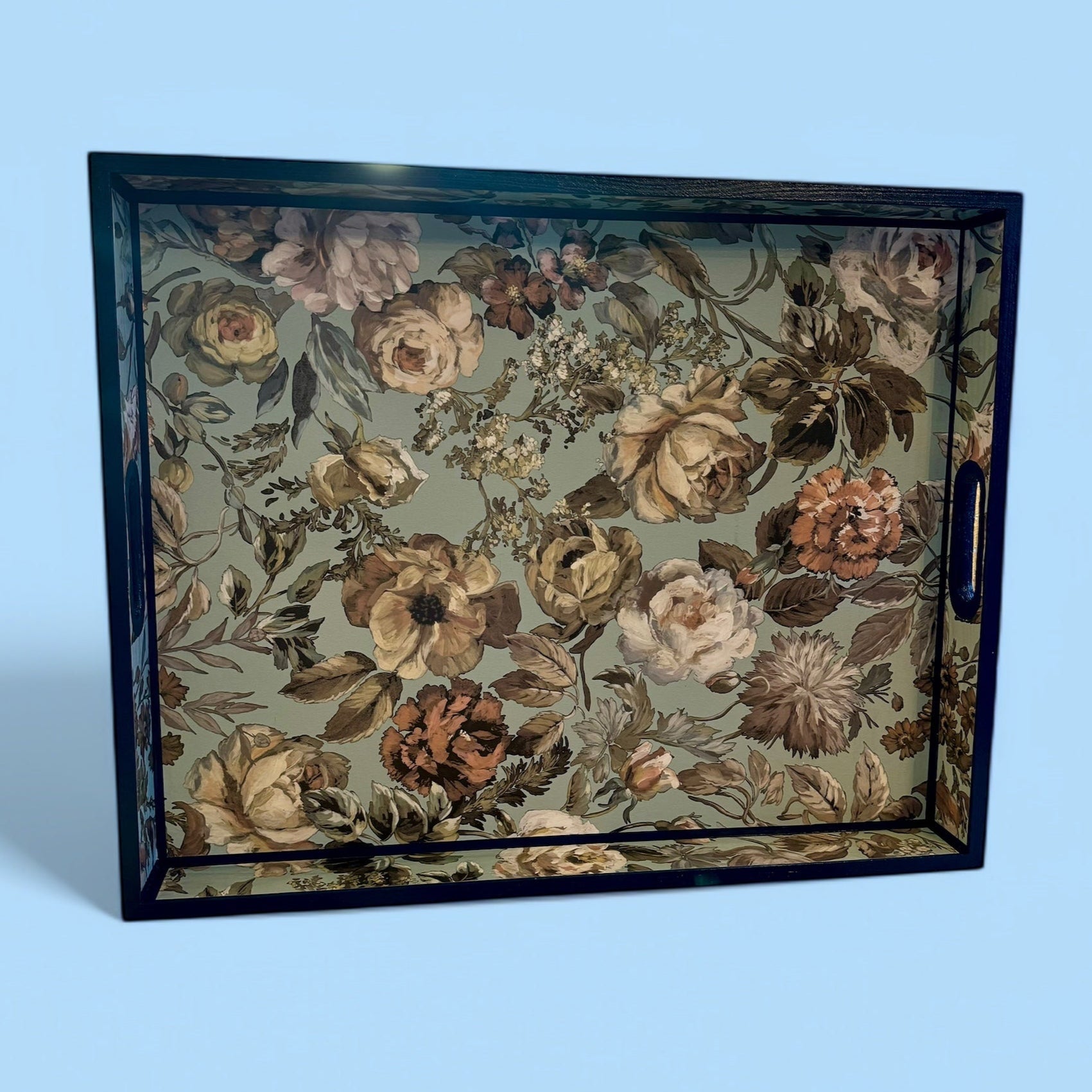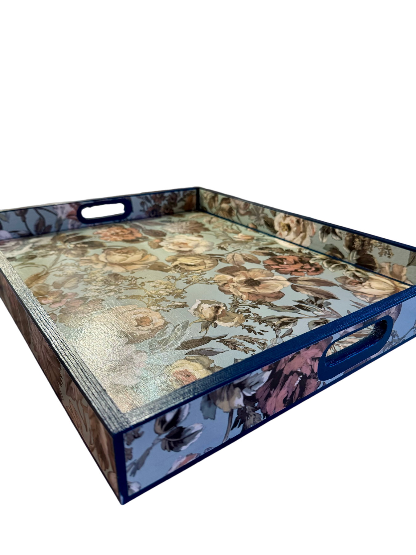 Each tray is meticulously decoupaged by hand and sealed with multiple layers of UV and water-resistant nanotechnology sealant, creating a smooth satin finish designed for long-lasting durability and everyday use.