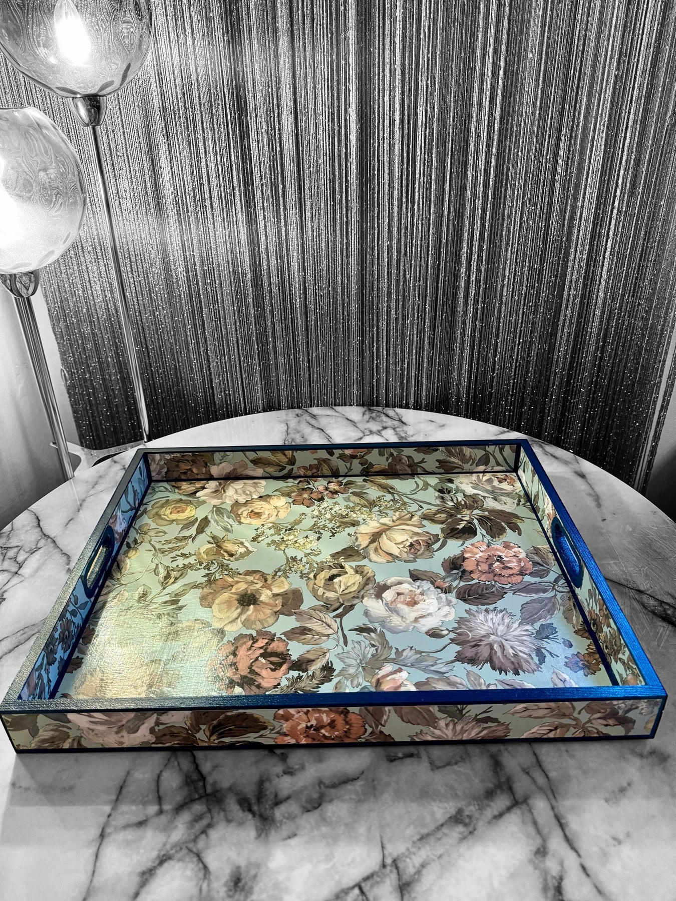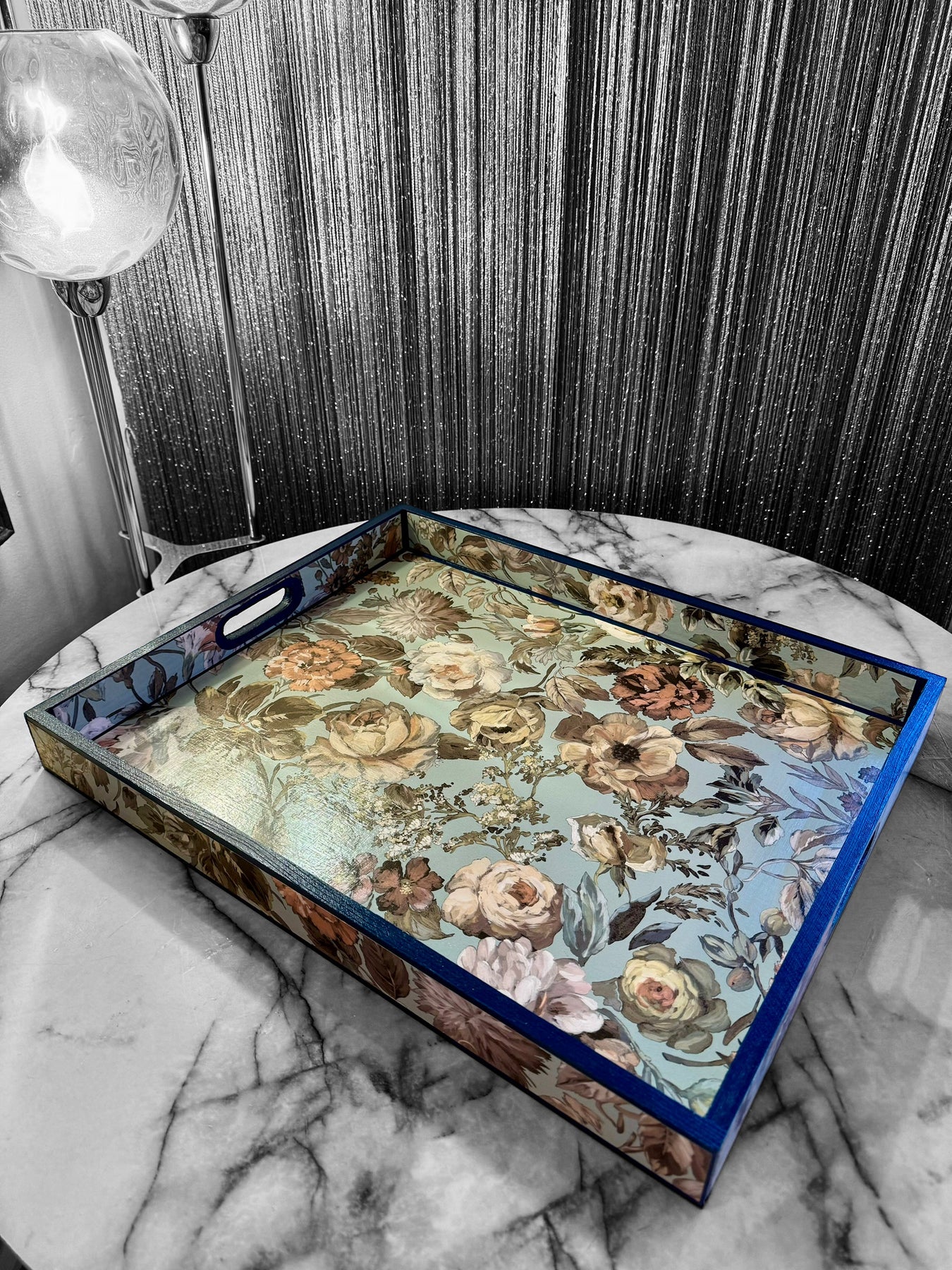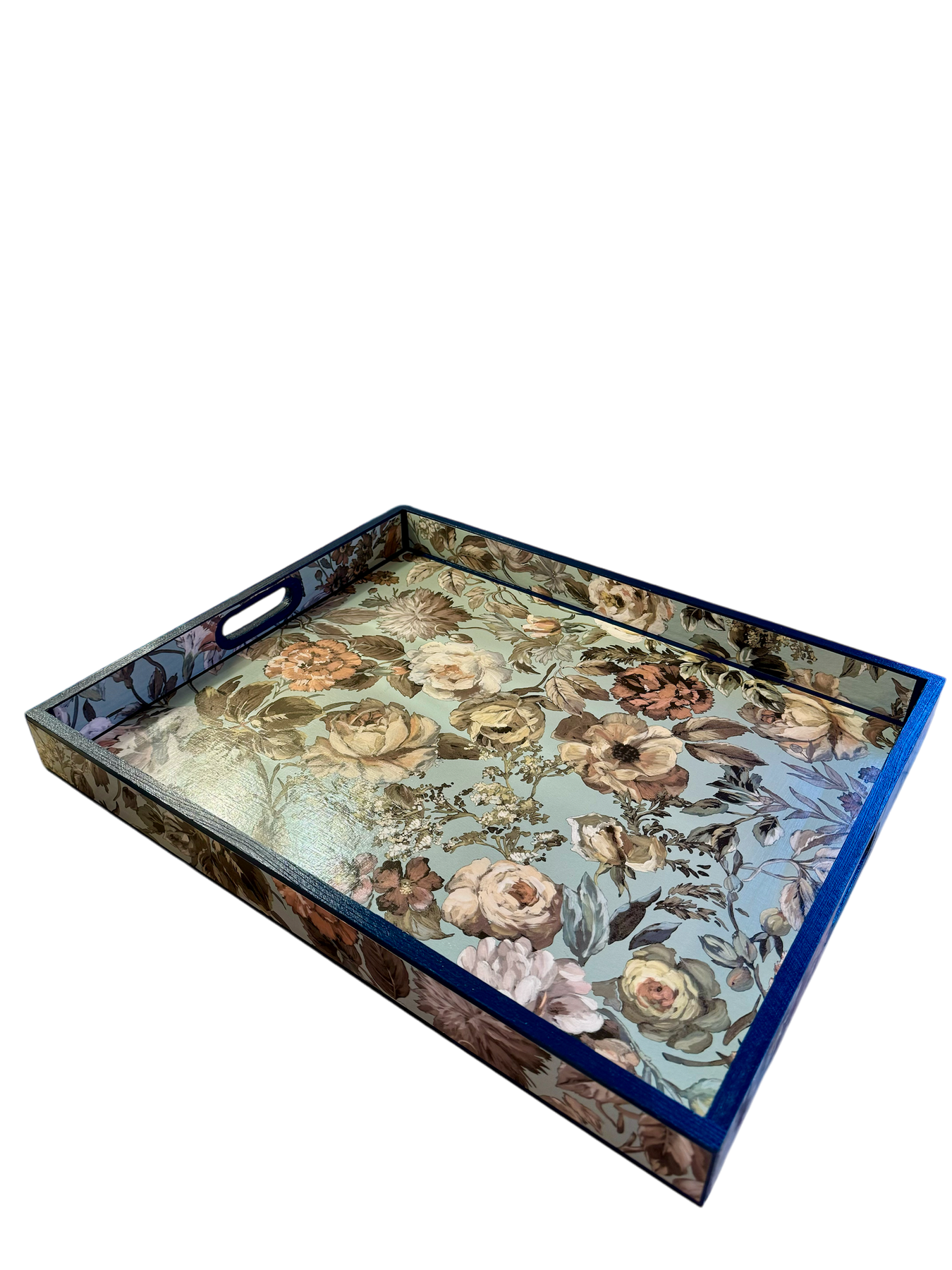 Each tray is meticulously decoupaged by hand and sealed with multiple layers of UV and water-resistant nanotechnology sealant, creating a smooth satin finish designed for long-lasting durability and everyday use.