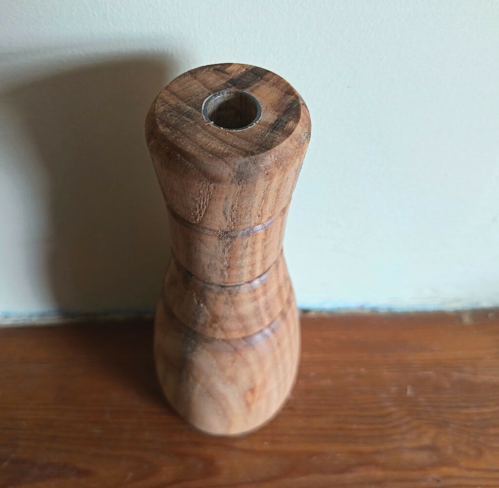This turned bud vase is made from beautiful ash wood. It has some lovely swirling grain. It has a test tube in so you can keep your flowers fresh, but looks equally good with dried flowers or grasses. The perfect present for a gardener!
