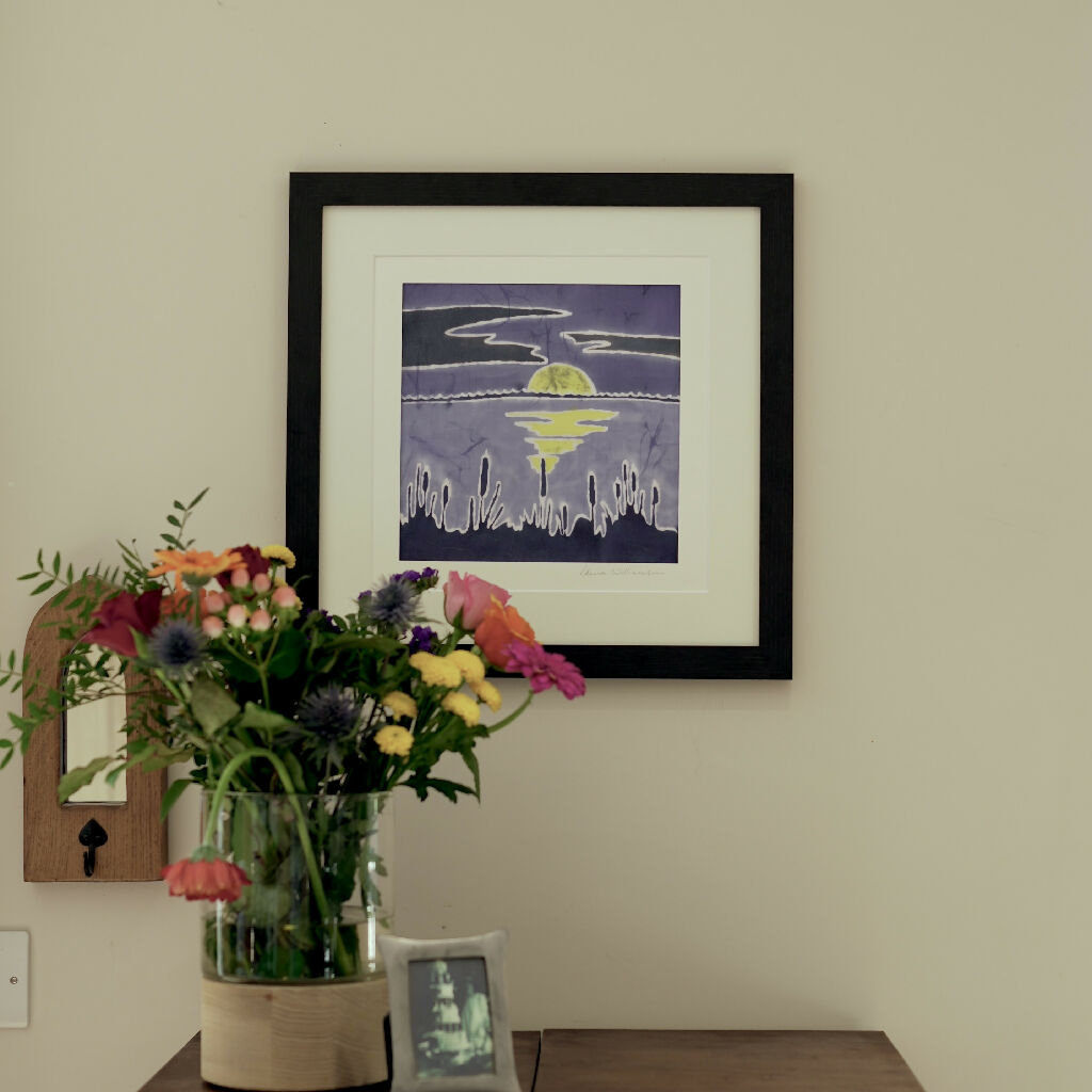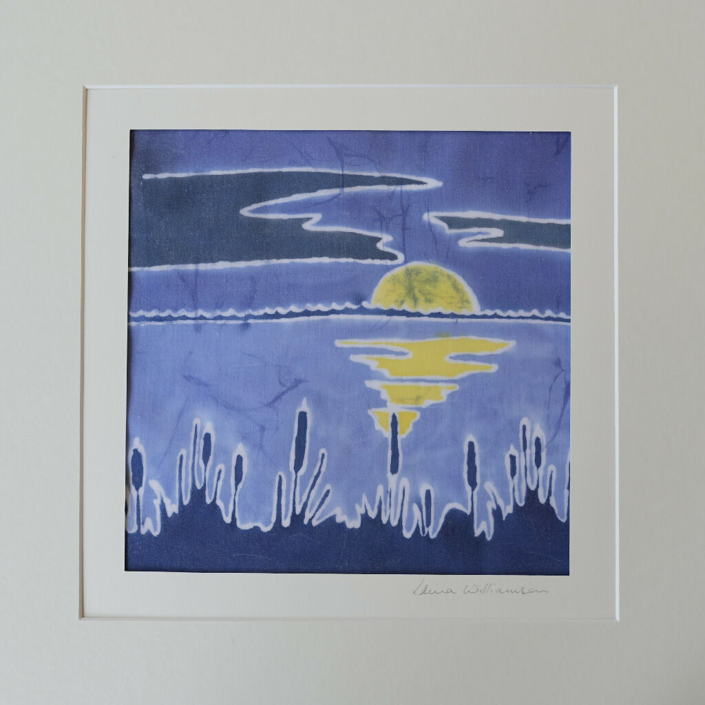 Featuring the reflection of the moon in an evening sky, "By the Light of the Moon" is an original hand dyed batik painting. I use 100% cotton, hot wax and water-based dyes to create my unique and stylish paintings. Shop original batik art from Batik by Laura at the Country Living Marketplace.