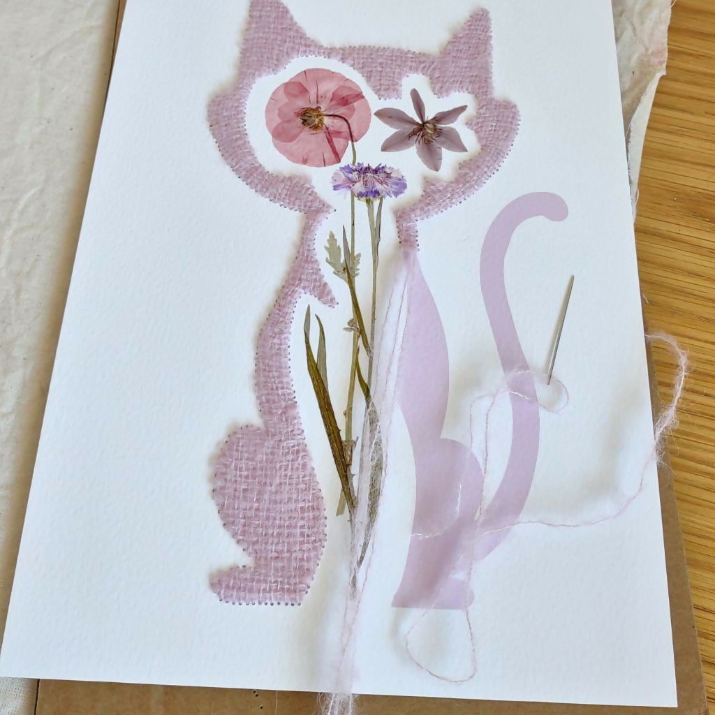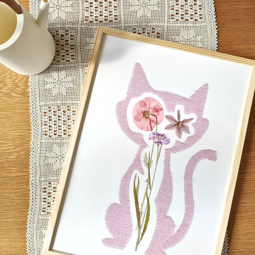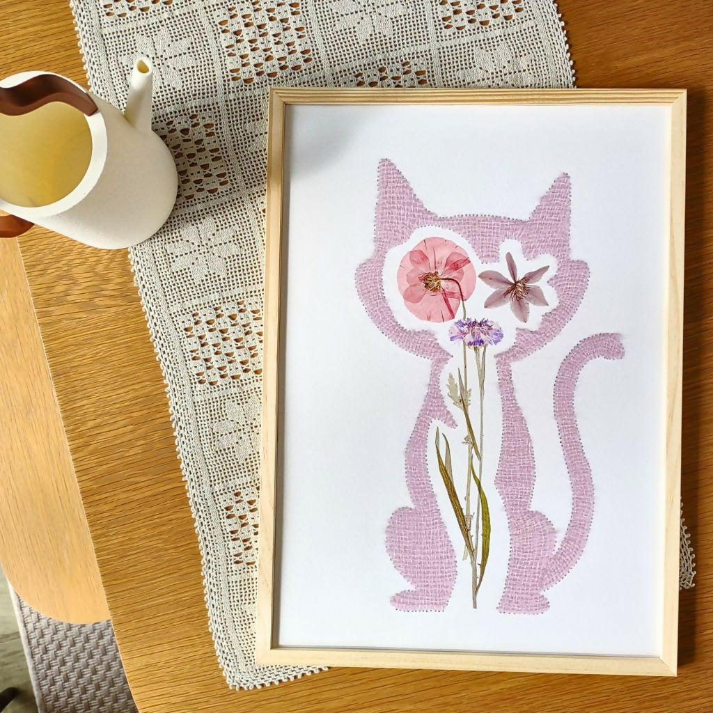Designed using pressed flowers and hand embroidered silk and alpaca stitches, the detail in this cat print is incredible! Every stitch of the fur actually looks real, thanks to the purrrfect giclee printing process.
