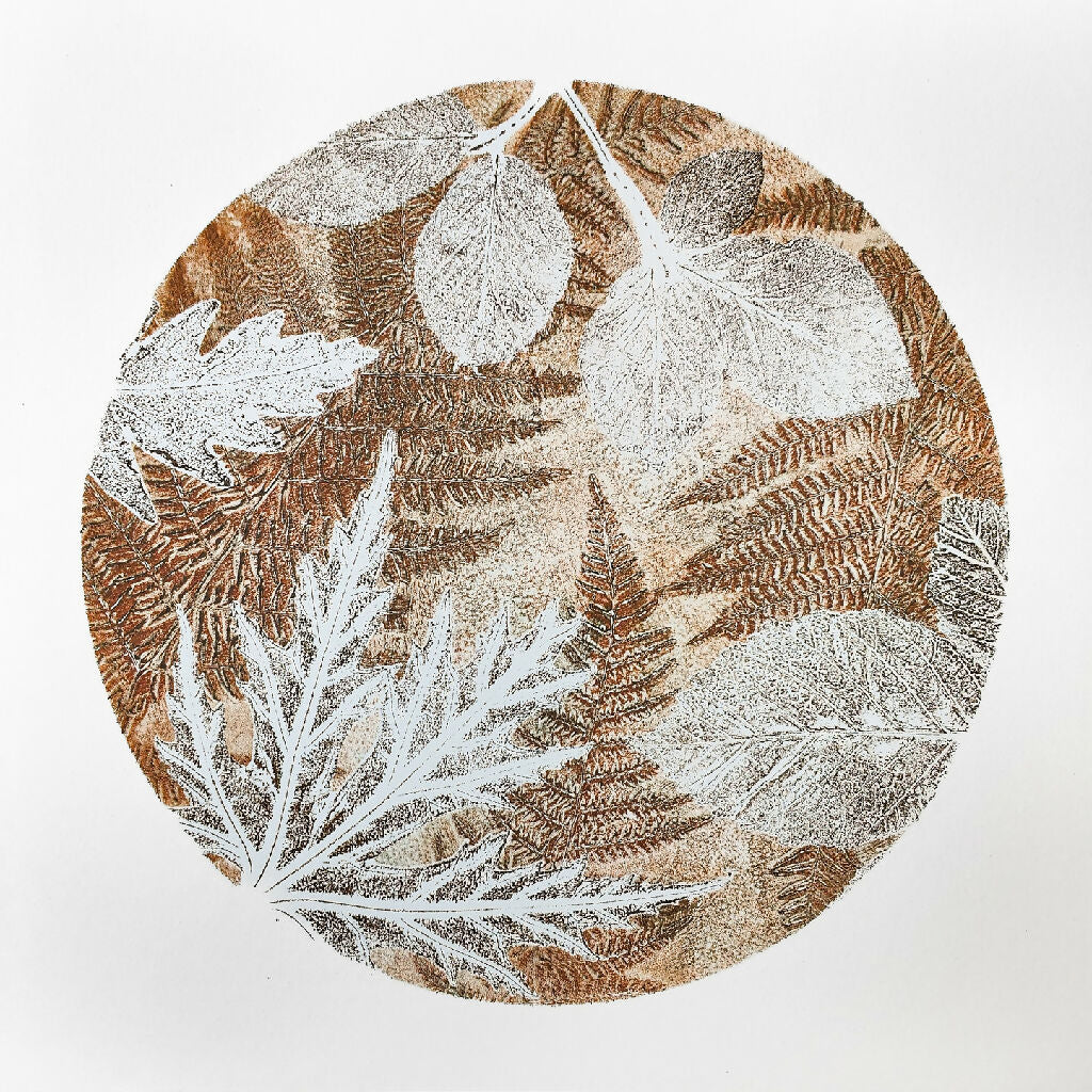 Appreciate the beauty of nature with this Giclee Fine Art print of foraged woodland leaves including Ferns, Oak, Hazel and Silver Maple from the Peak District. This piece was created in September 2024 as part of my Wild Woodland Gelli Print Collection.