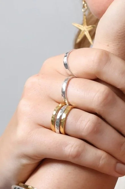 Introducing my exquisite handmade Hammered Stacker ring, crafted with organic textures for a truly unique touch. Each ring is meticulously handcrafted to perfection, showcasing intricate details that highlight its artisanal charm. The organic textures add a natural element, making this ring a standout piece in any jewellery collection. This looks lovely as I stand alone ring but also a fantastic stacker.