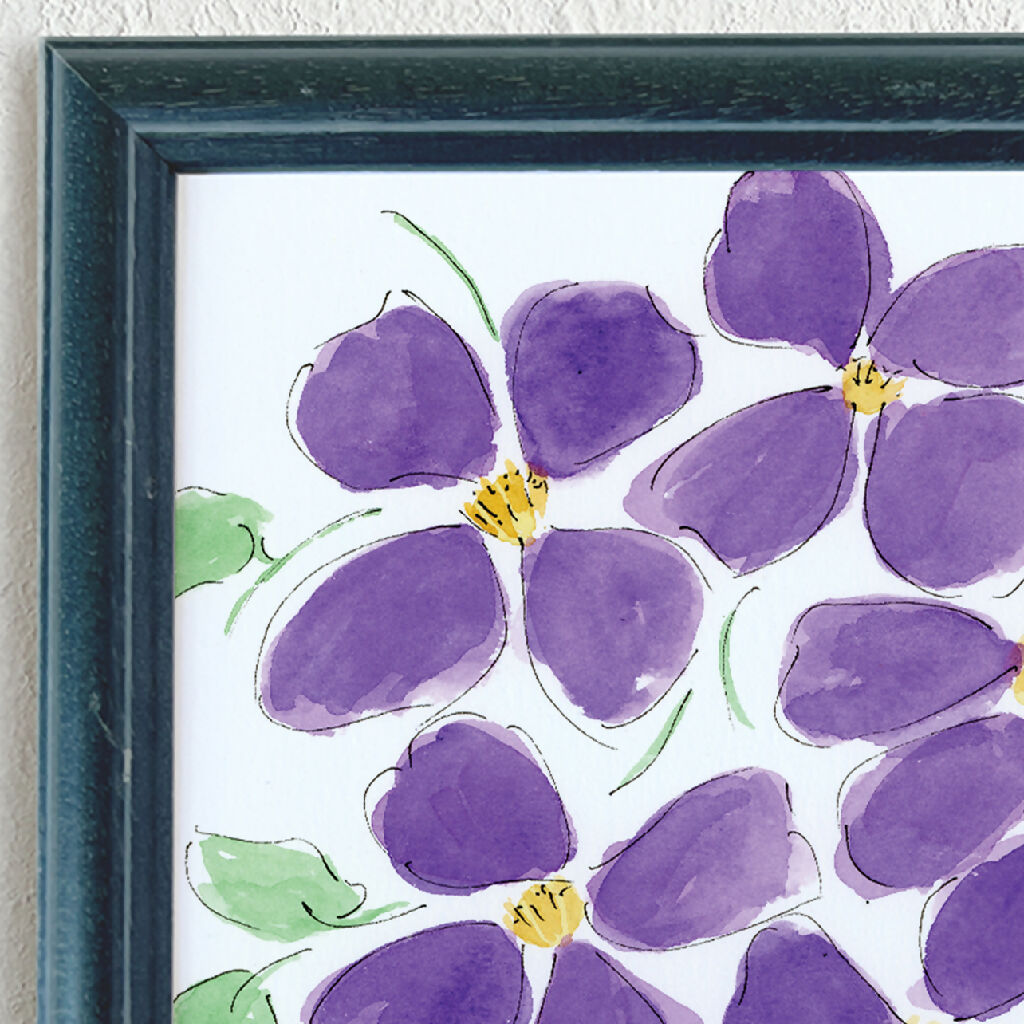 The illustration has been created by hand with ink and watercolour in a flowing, natural style.