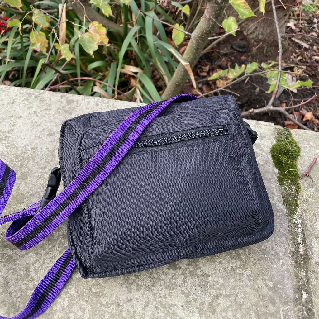 black-crossbody-dog-walking-bags-with-purple-or-blue-strap-reg-and-bob