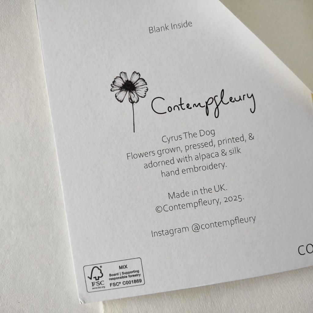 Made from a sustainable, luxurious, 350gsm, matt card, we hope Cyrus will stick around for a while; He loves it when you keep him!