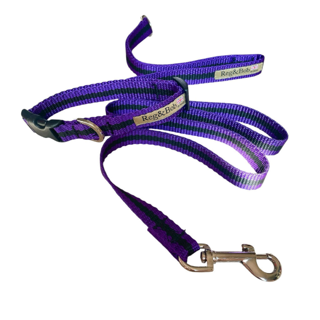A matching collar and lead set in our regal purple stripe, with a bit more presence. Made from durable polypropylene webbing, built for everyday wear.
