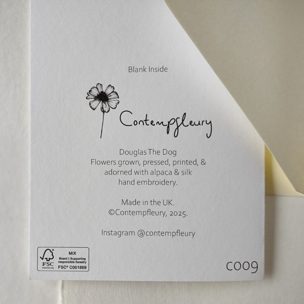 Made from a sustainable, luxurious, 350gsm, matt card, we hope Douglas will stick around for a while; He loves it when you keep him!
