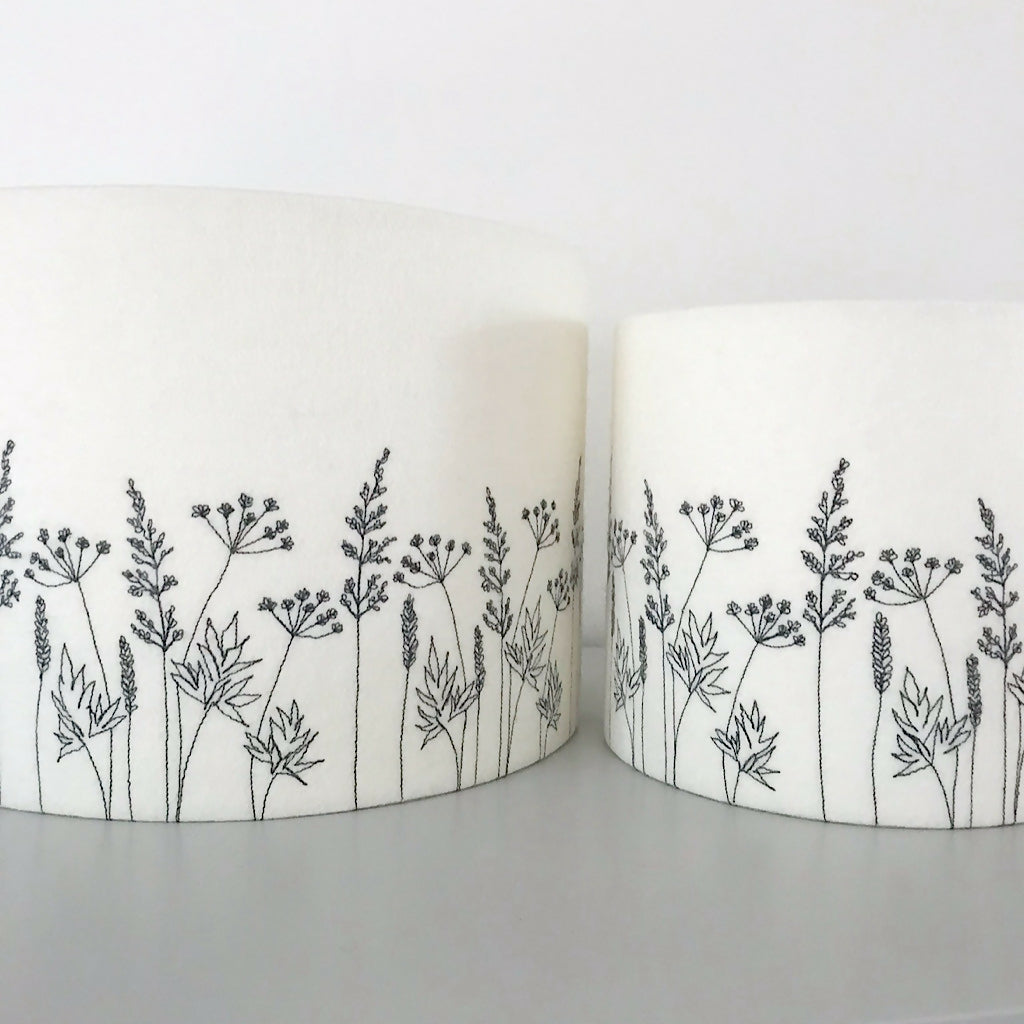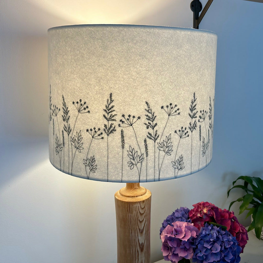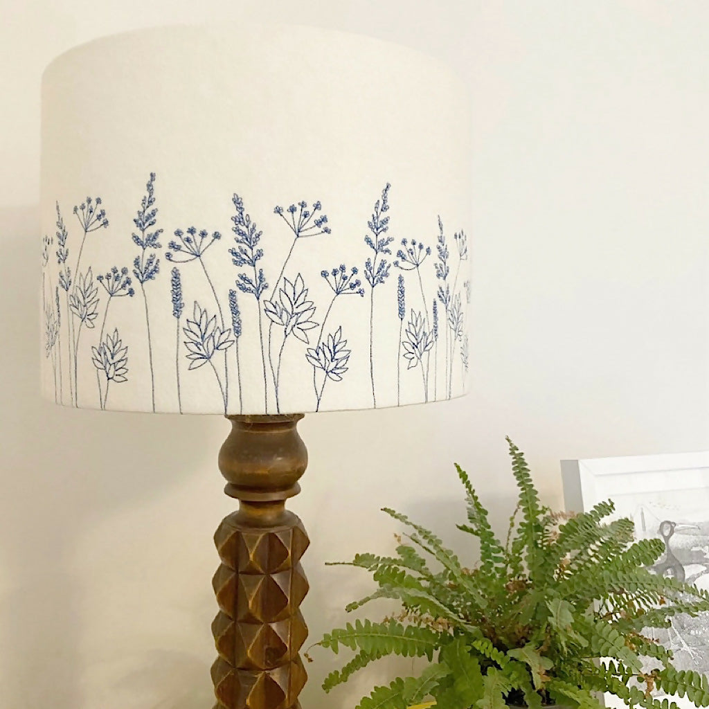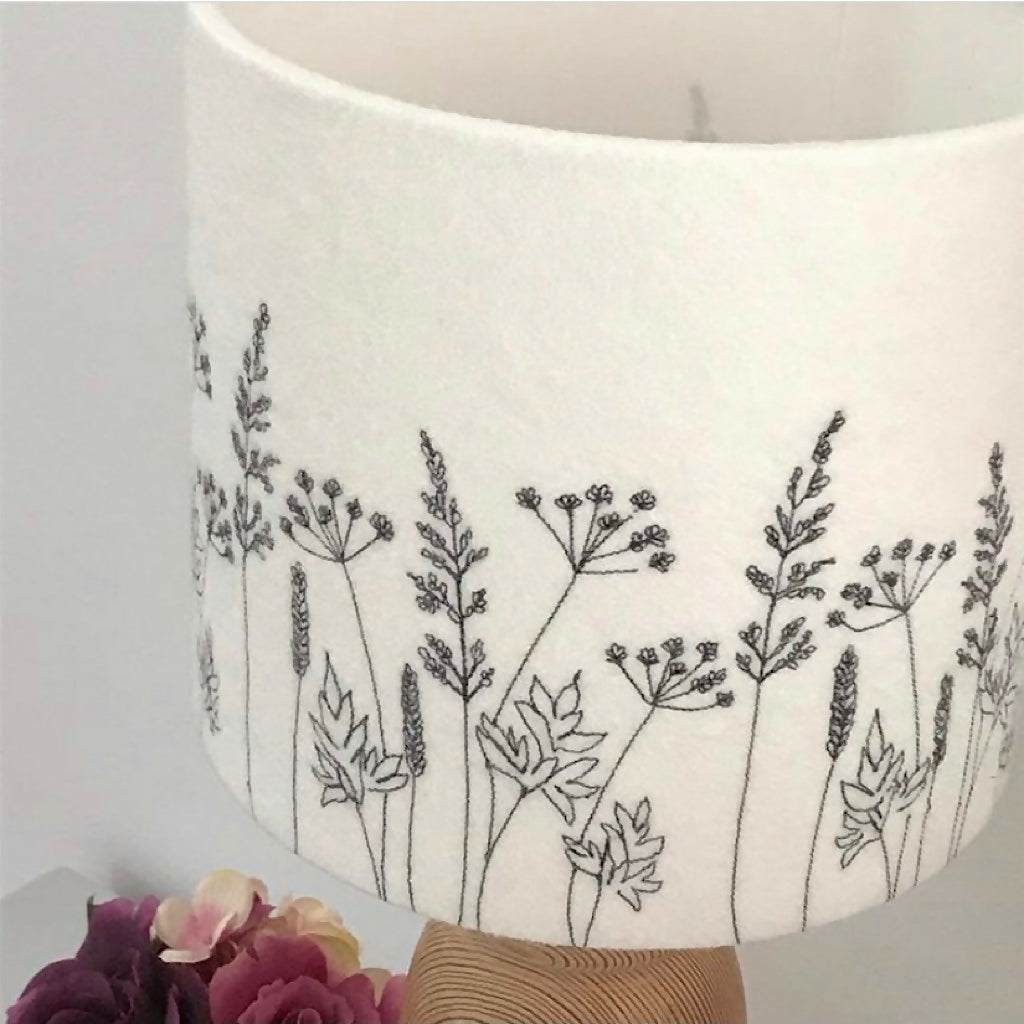 Add a touch of nature-inspired elegance to your home with this handcrafted Hedgerow lampshade. Made with a neutral felt background, each piece is individually created using freehand machine embroidery, bringing the delicate beauty of hedgerow plants to life. Choose your preferred thread color to complement your space, making this a truly unique and personal addition to your décor. Perfect for creating a warm and inviting atmosphere, this bespoke lampshade is a stunning blend of artistry and craftsmanship.