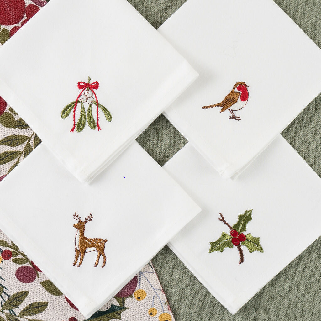 The perfect accompaniment for a Christmas soiree, or to give as a little gift to an individual who enjoys entertaining and socializing. These napkins are available as a set of four or six, and make a great stocking filler.