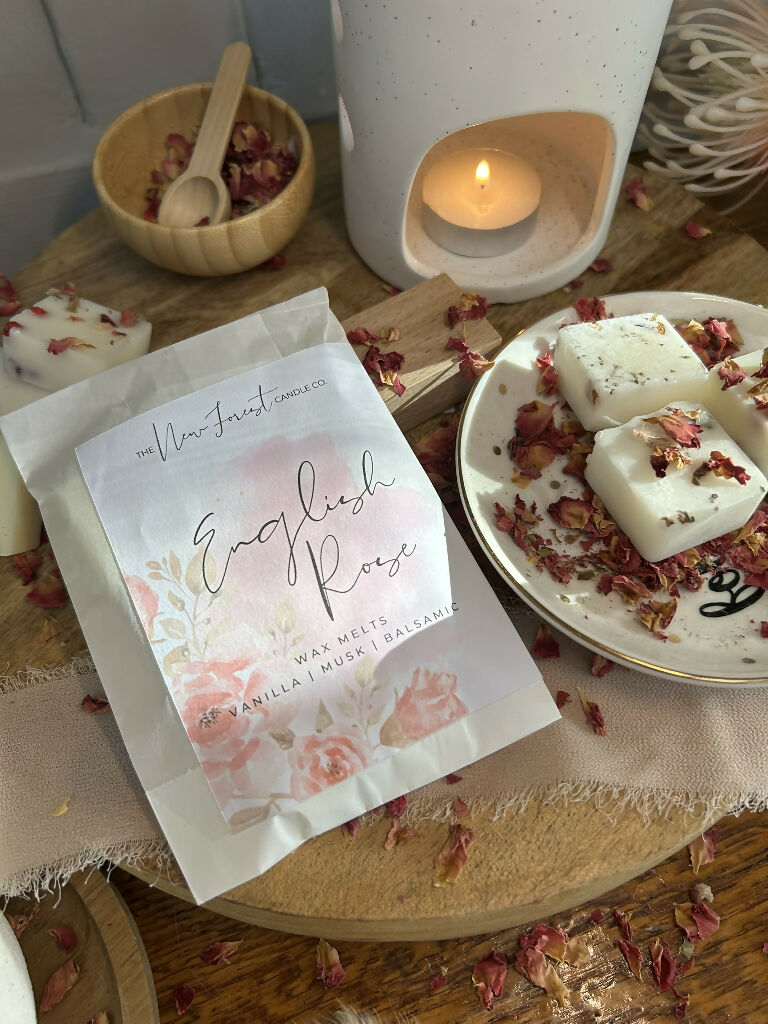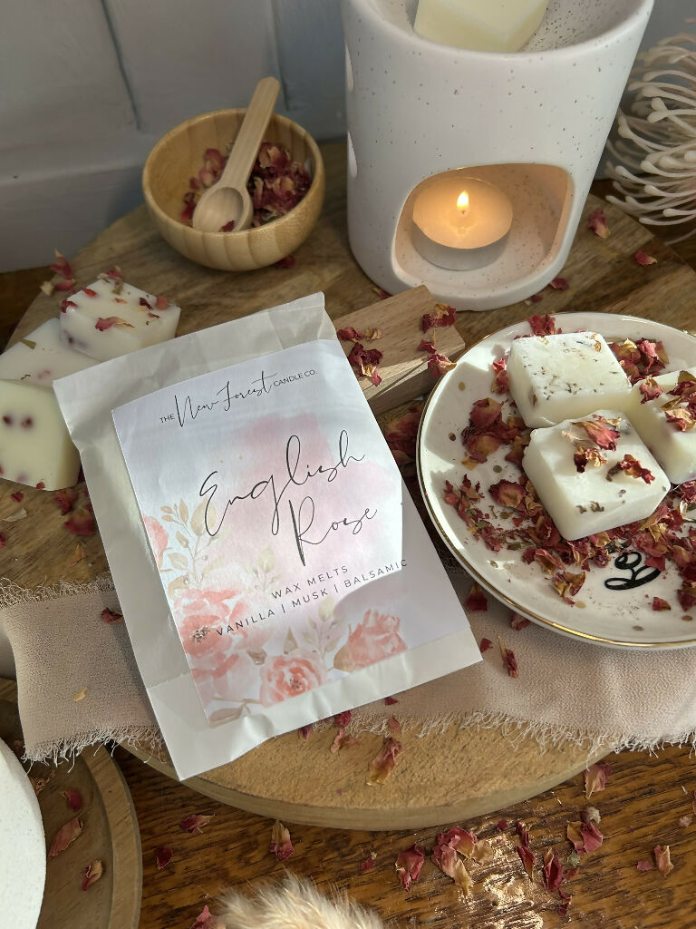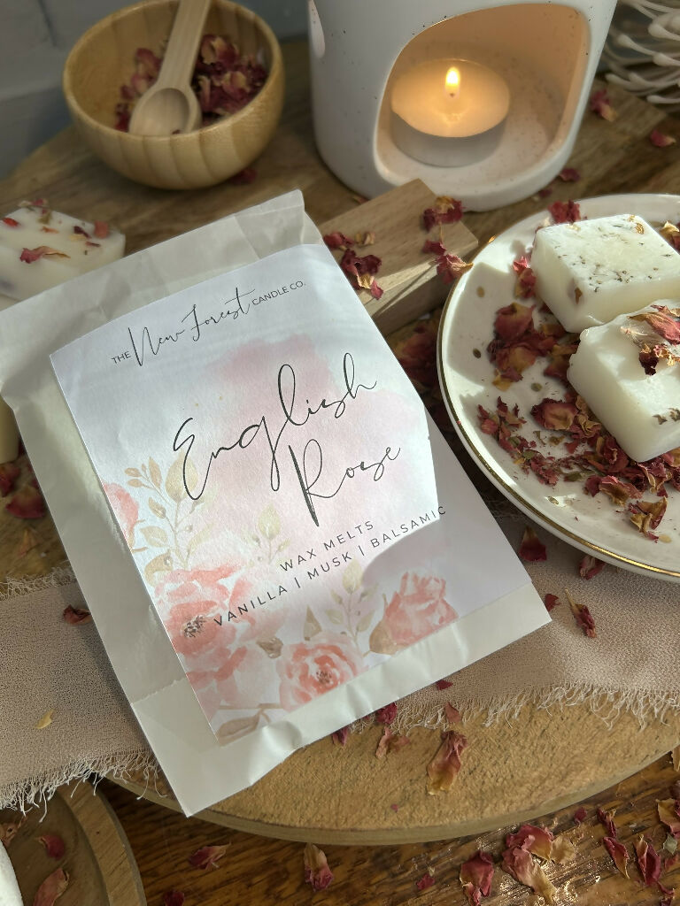 English Rose Botanical Wax Melts, scented wax melts with decorative botanicals.
