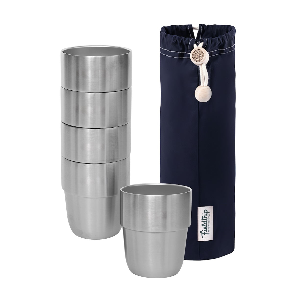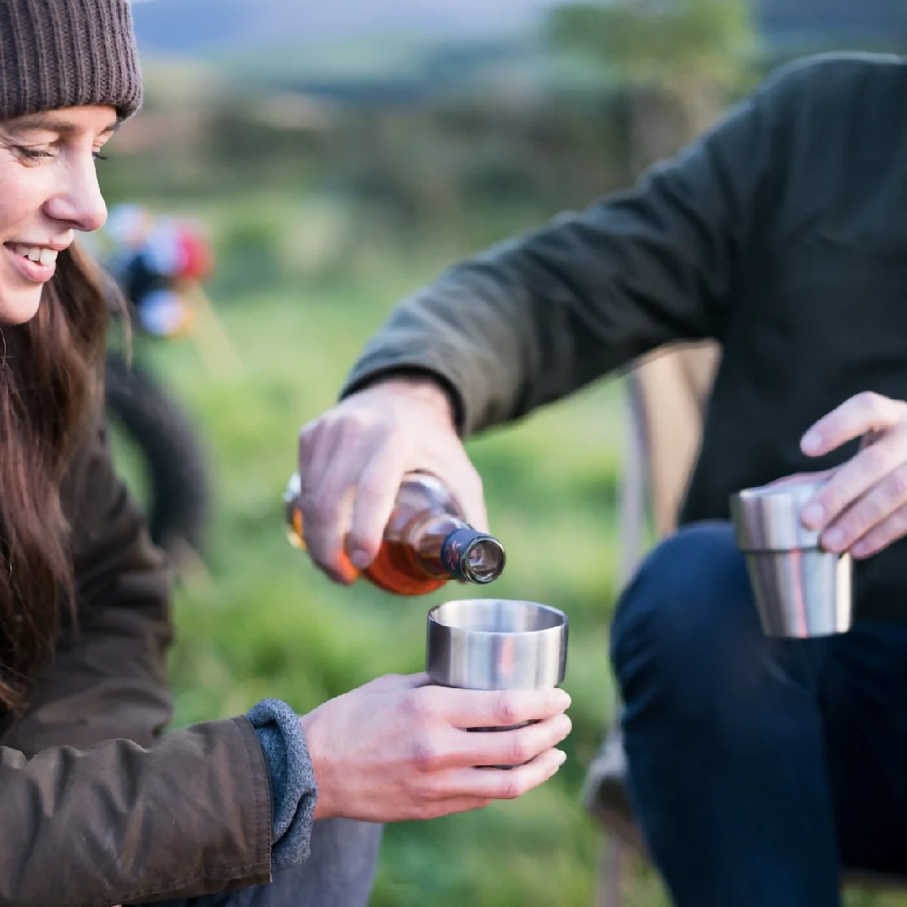 No more clanking cups rattling around in your rucksack, or taking scratched plastic cups down the beach, our vacuum insulated stainless steel expedition cup set neatly stack into their included waxed cotton bag making them perfect for hot and cold drinks outside whatever the weather.
