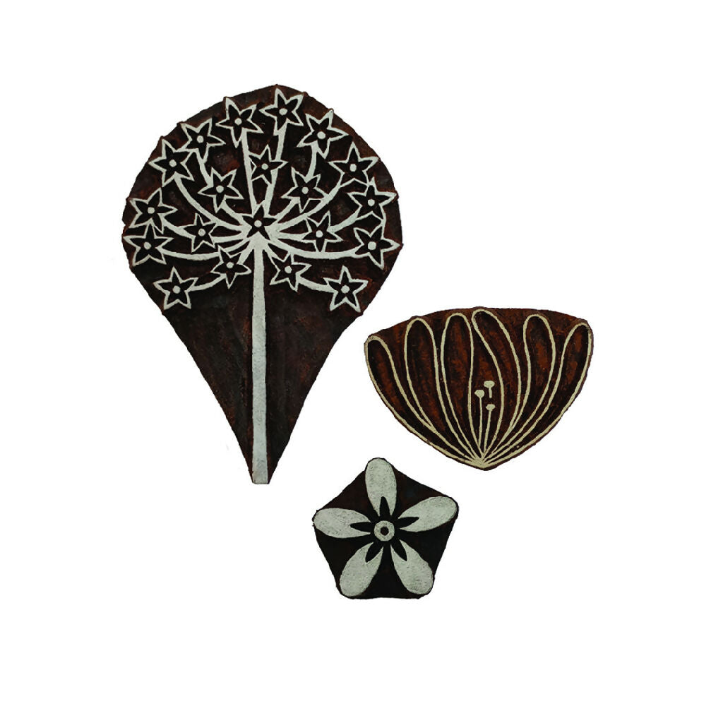 3 hand-carved blocks (designed by us in the UK and hand-carved by artisans in Jaipur, India).