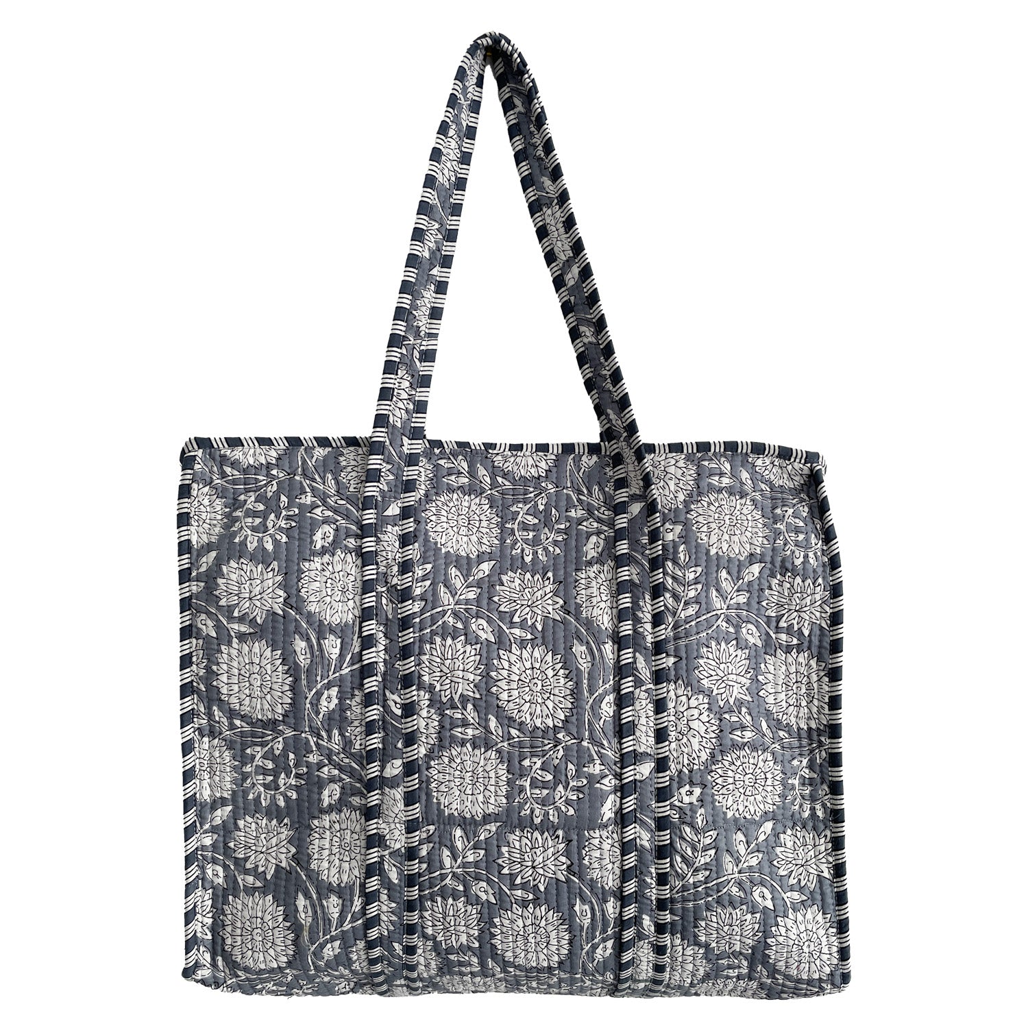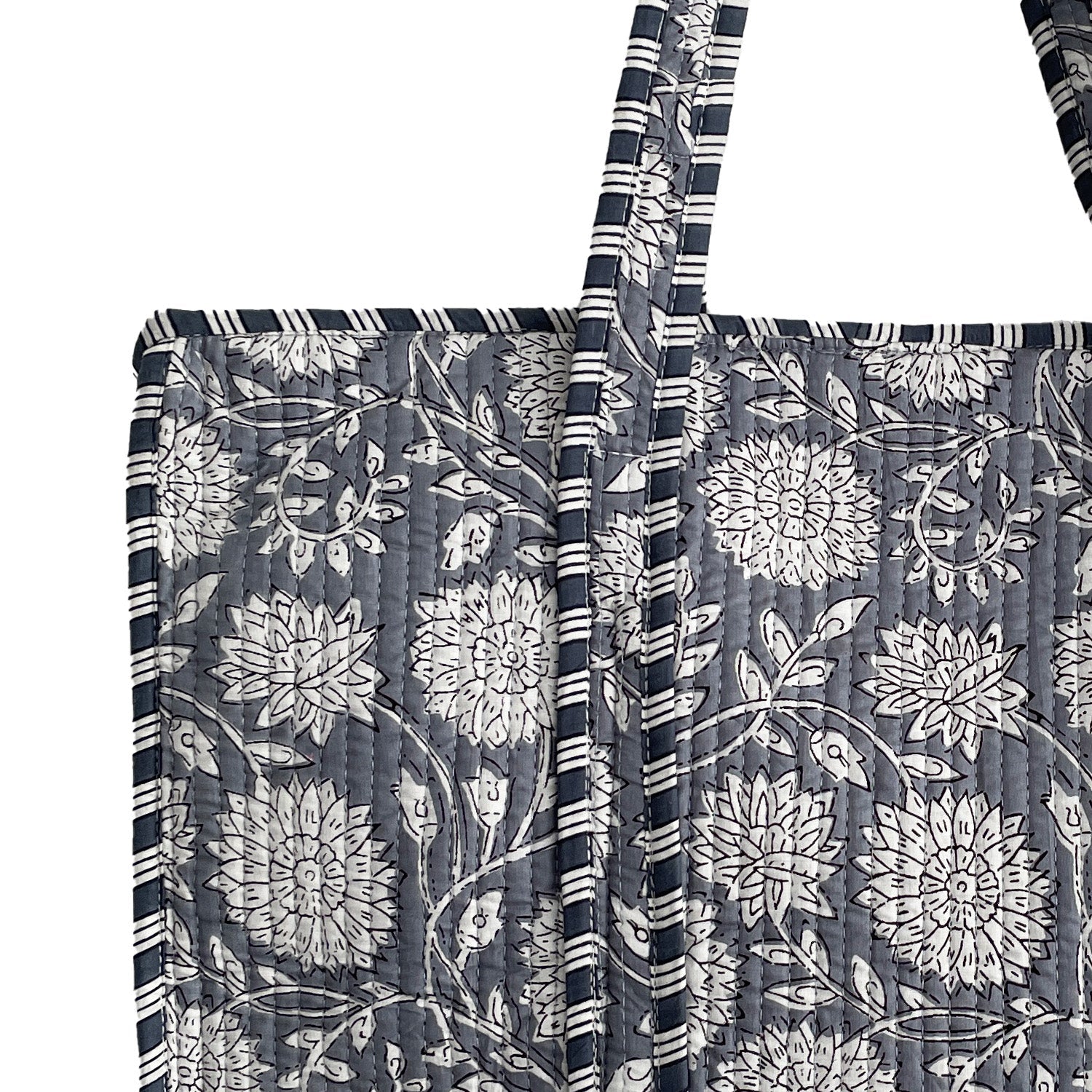 Each bag is one-of-a-kind due to its handmade nature, with slight variations in print placement. Each bag is individually made by artisans in Jaipur, India, using 100% Cotton and natural fibres for the quilting.
