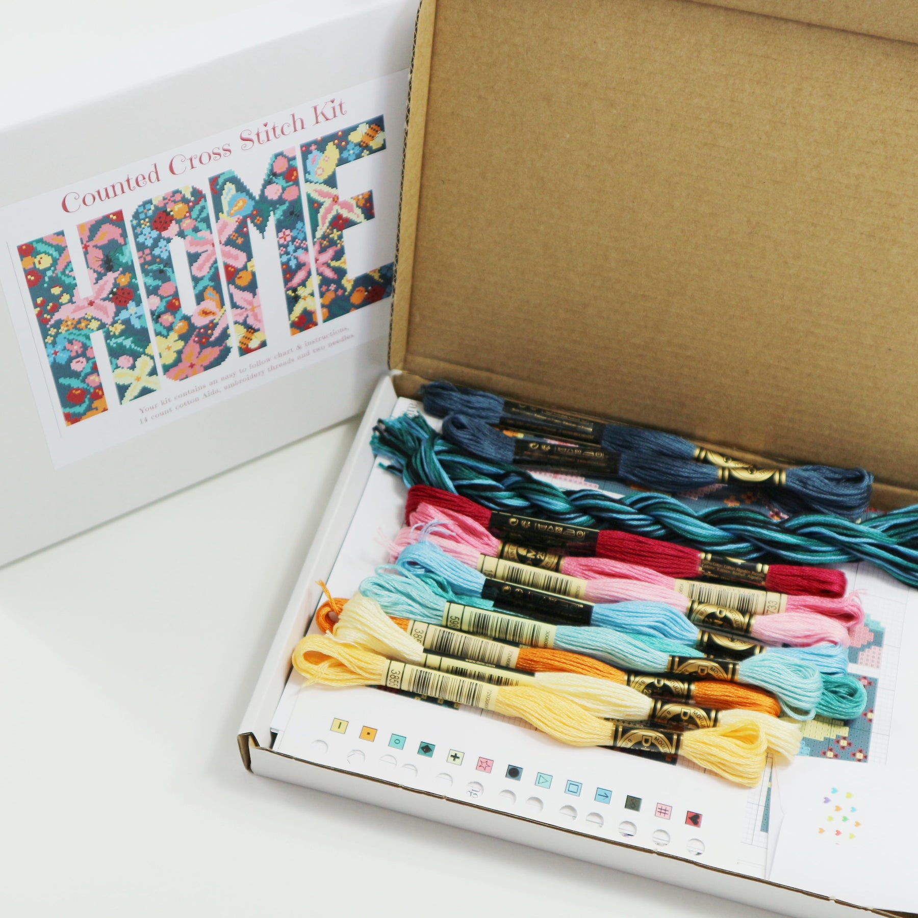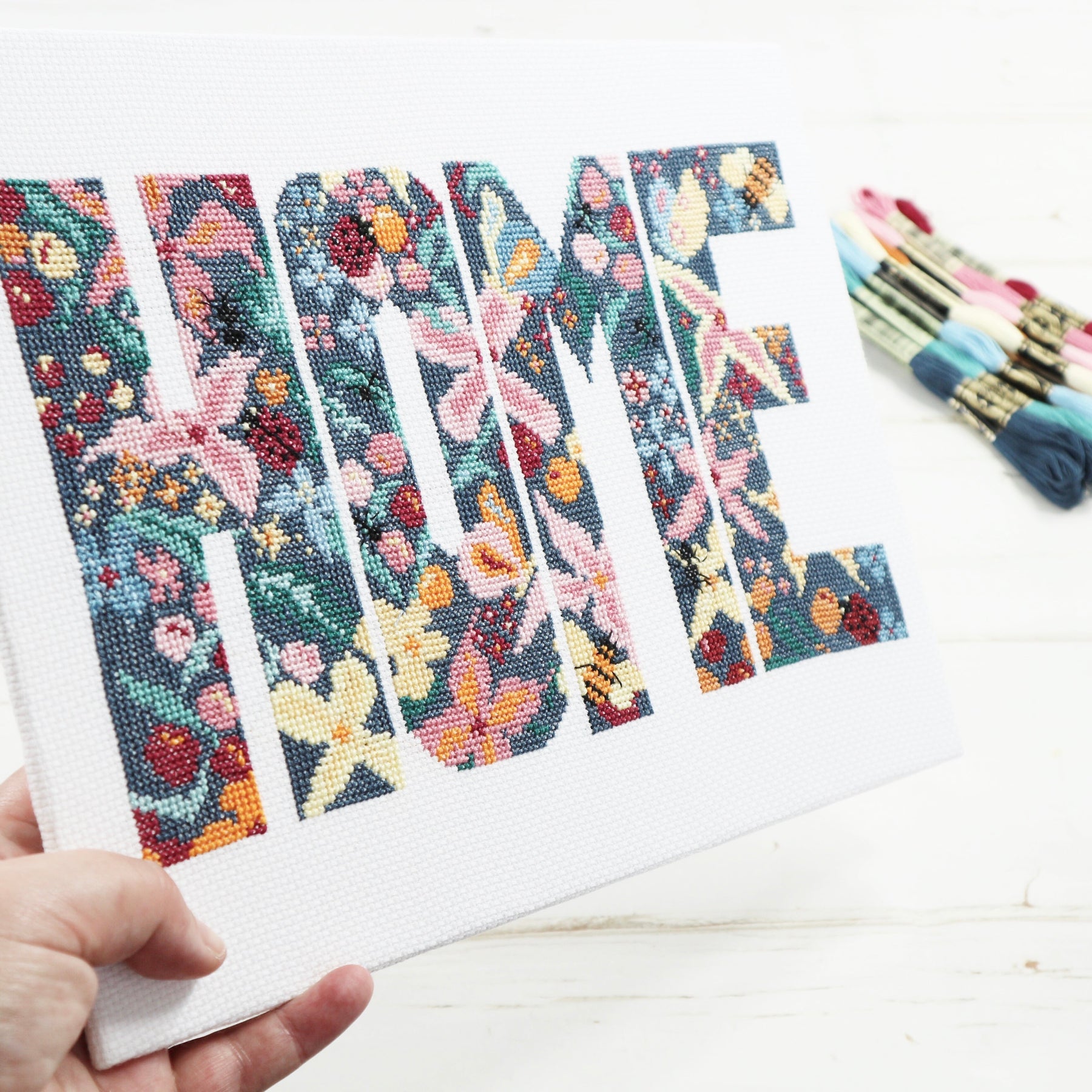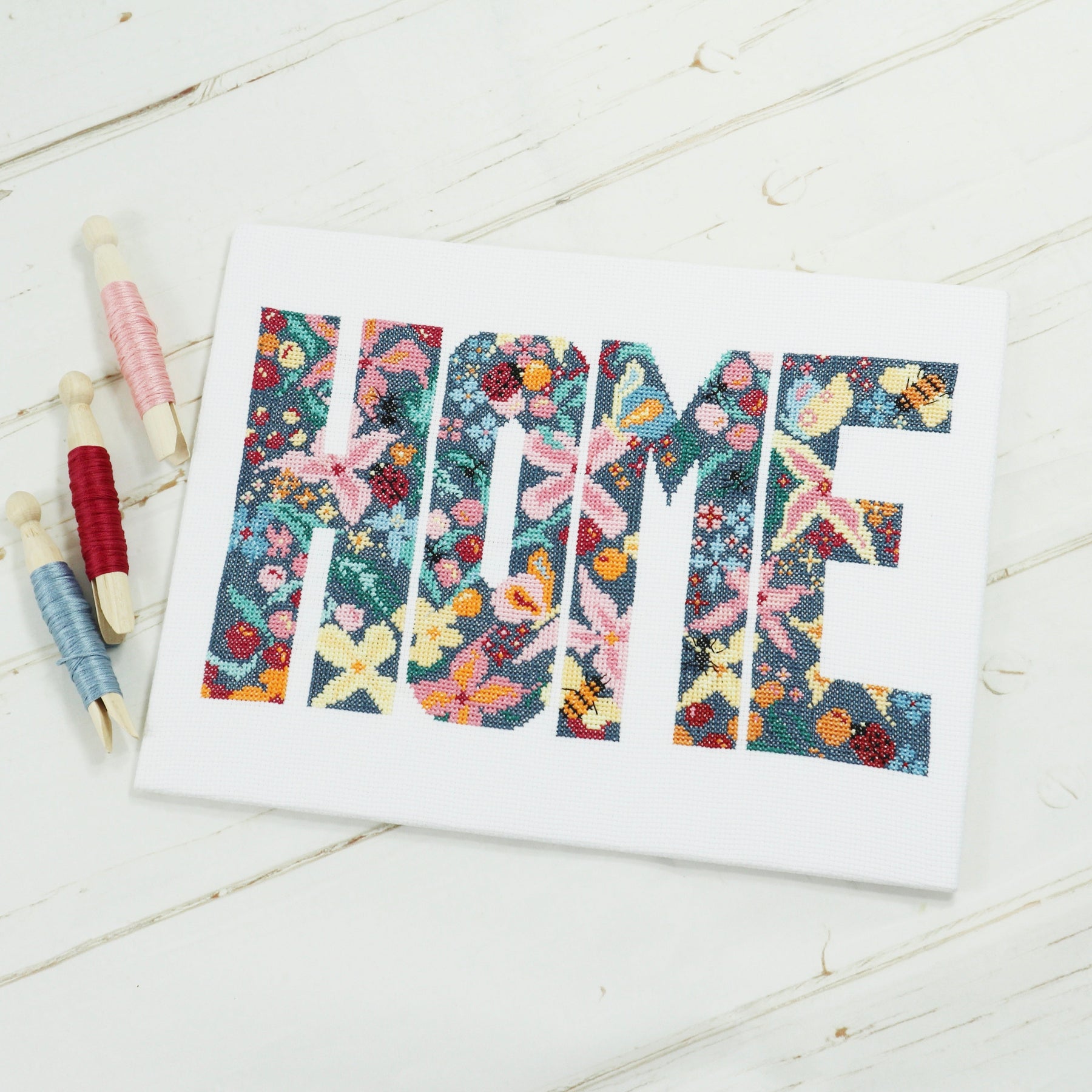 Stitch your own beautiful 'Happy To Bee Home' modern cross-stitch. This counted cross-stitch kit contains everything you need to create the original, contemporary cross-stitch d...