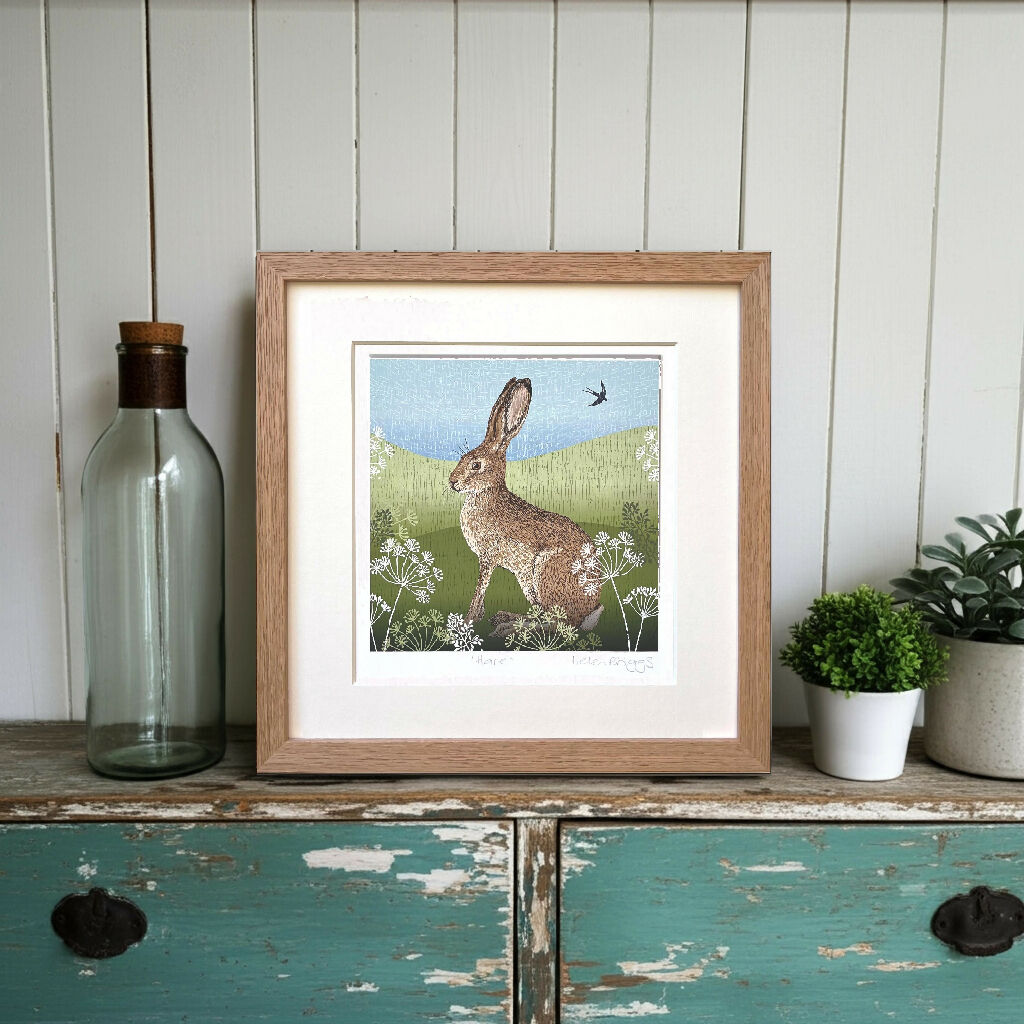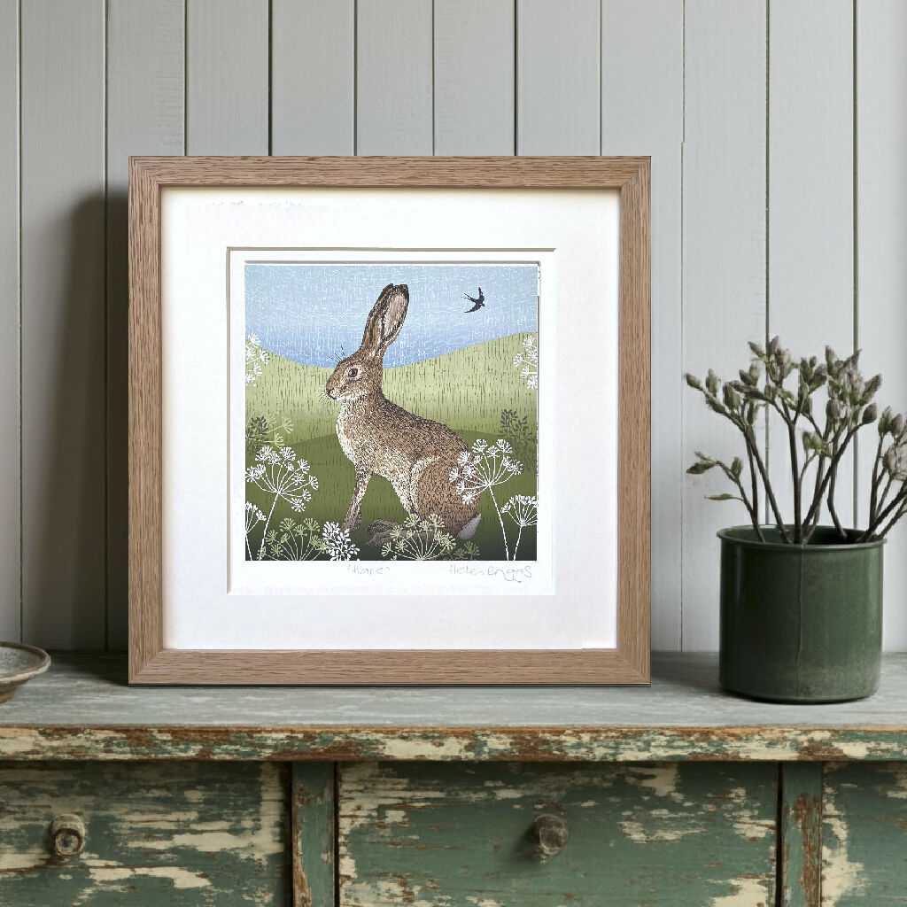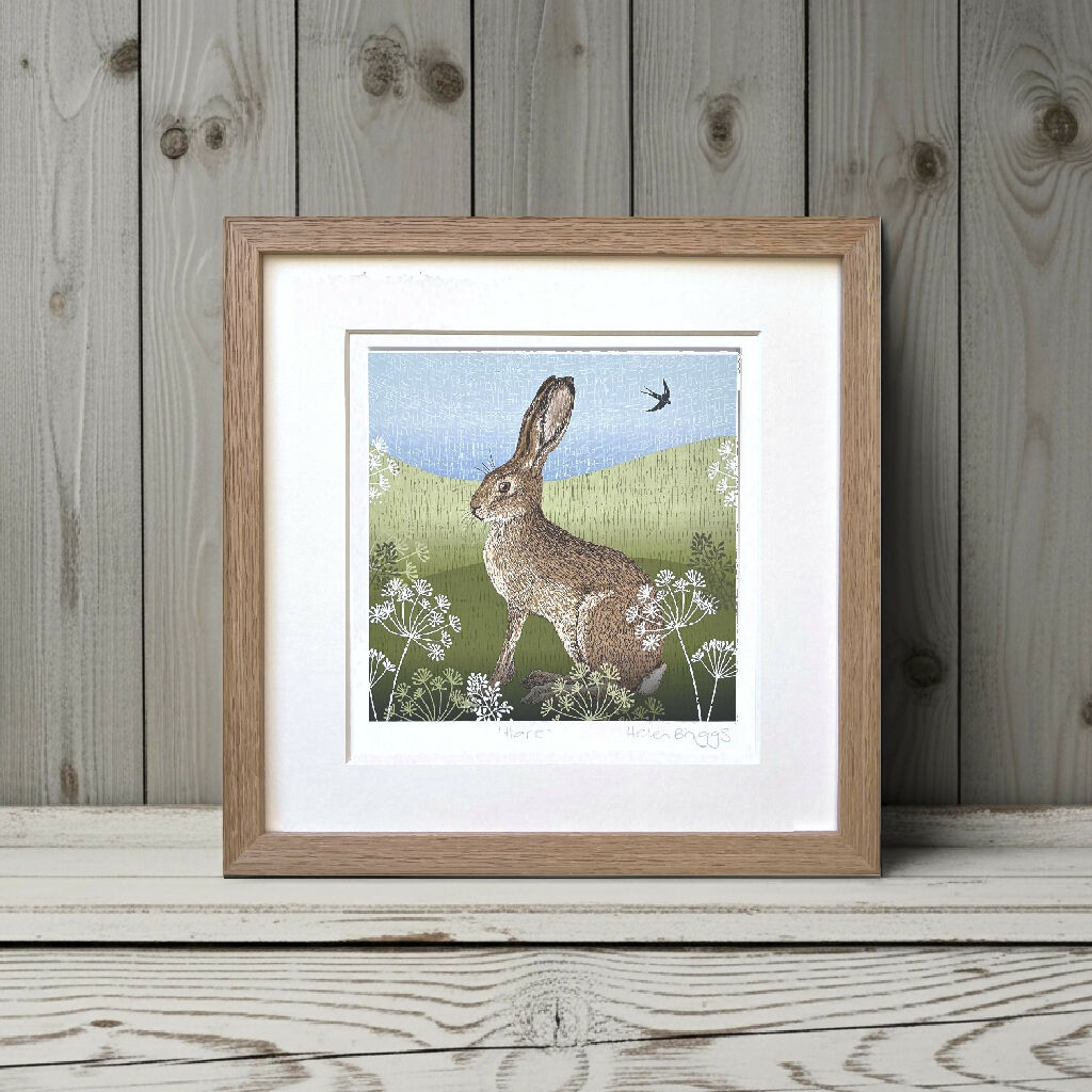 Inspired by the beauty of the British Countryside this hand drawn print, with an etched feel, depicts a Hare in the soft rolling fields , from an original artwork - High quality signed Giclée print of an original artwork professionally printed onto 300 gsm fine art paper