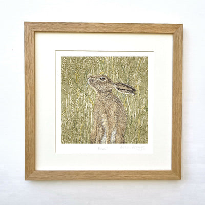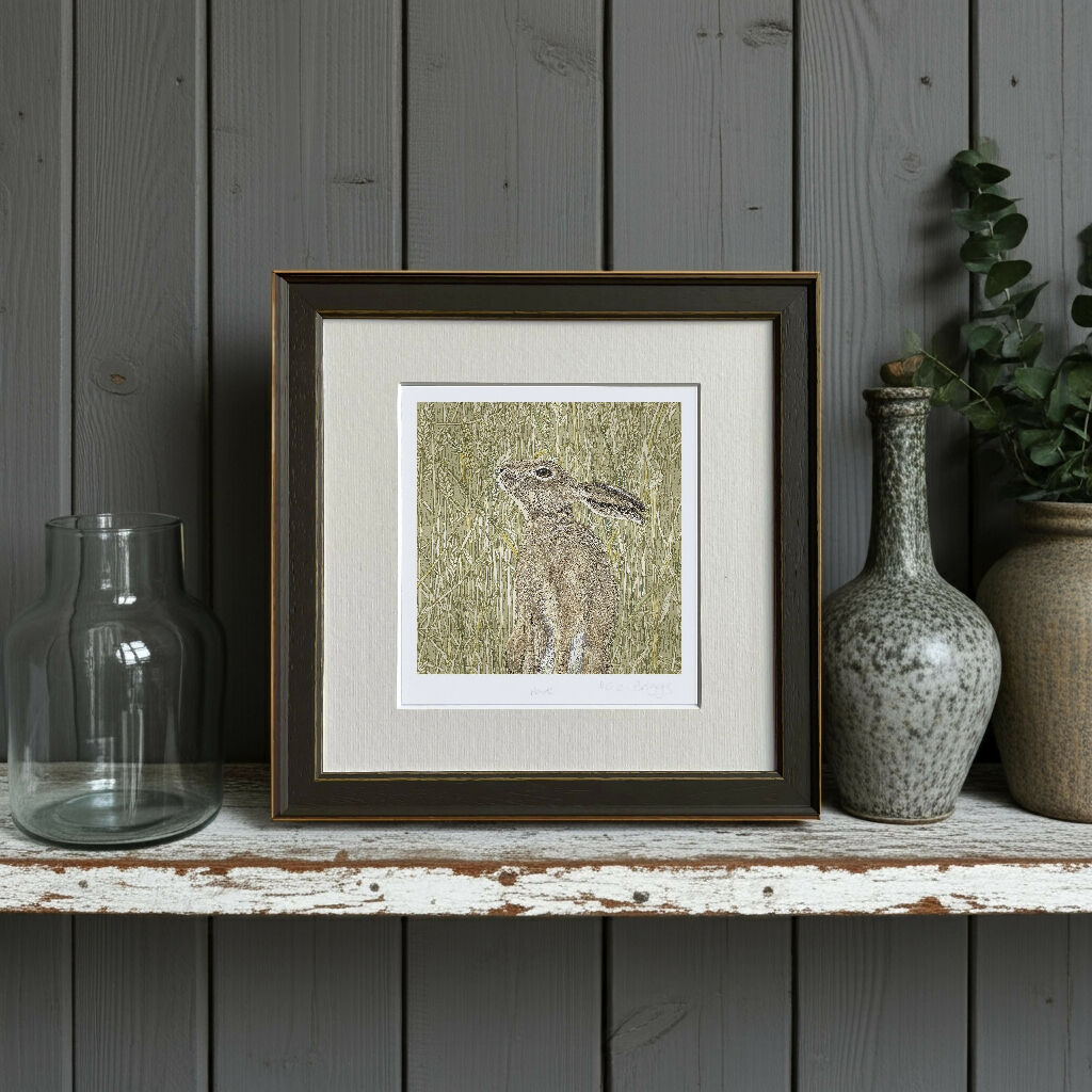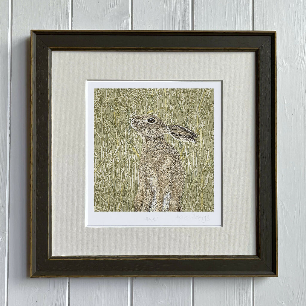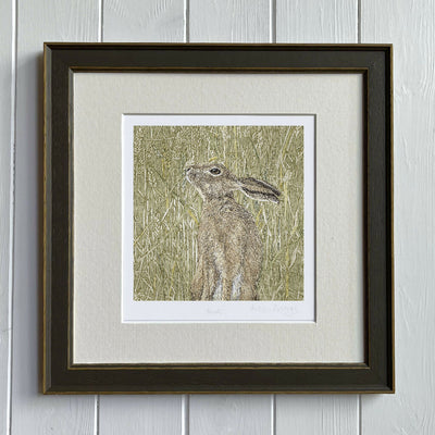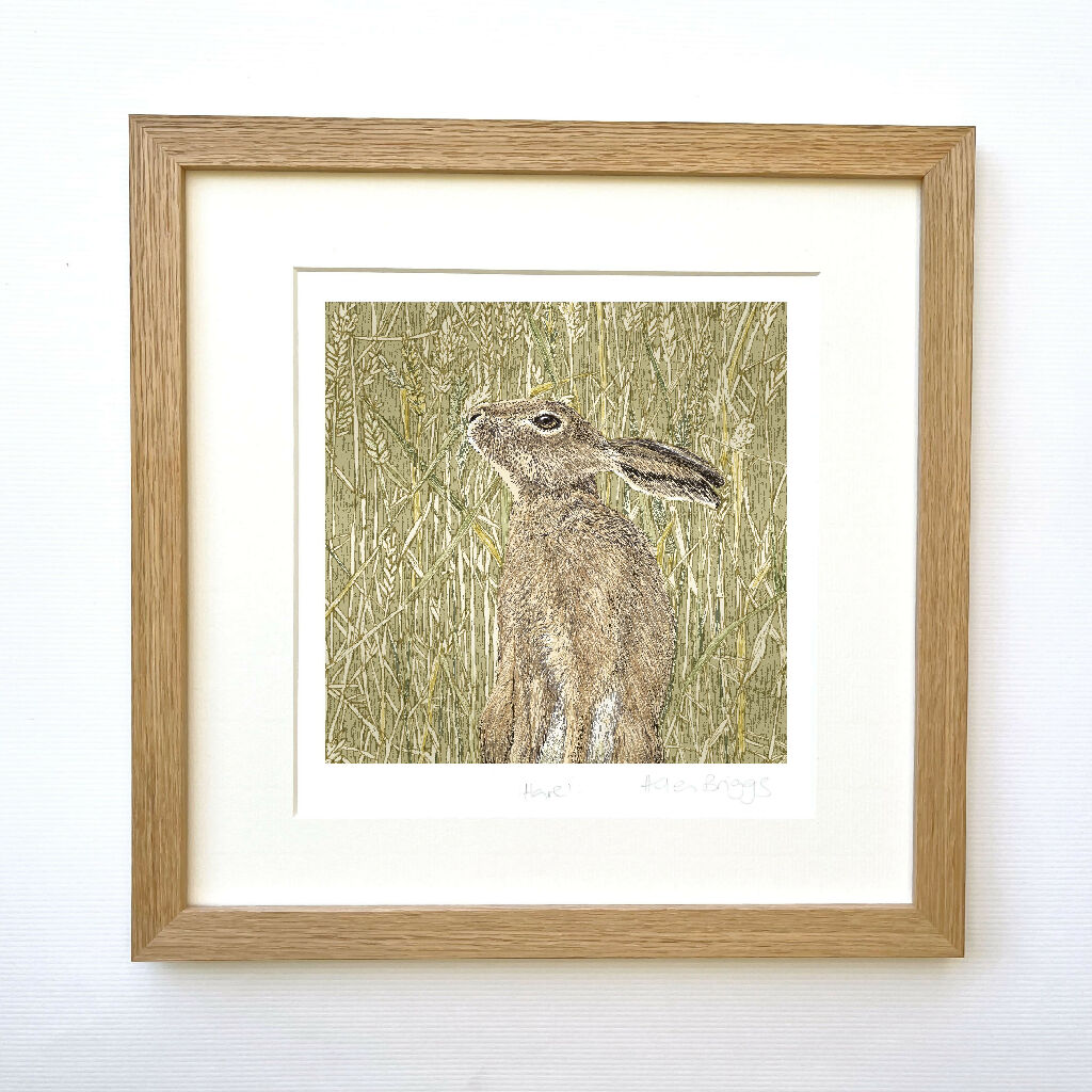 Inspired by the beauty of the British Countryside this hand-drawn print with an etched feel depicts a Harvest Hare in wheat fields.