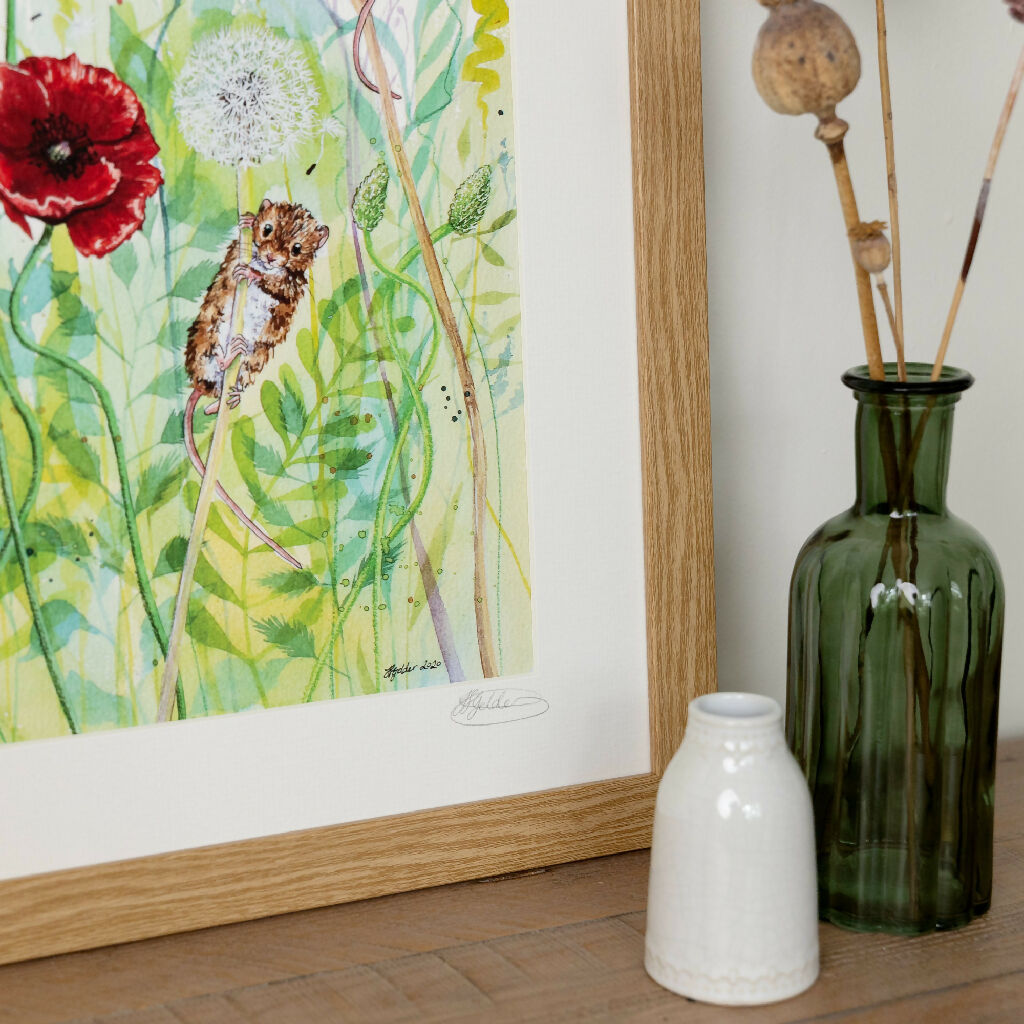 Harvest Mice & Poppies Limited Edition Print 'Hide and Squeak' | Jina Gelder Illustration