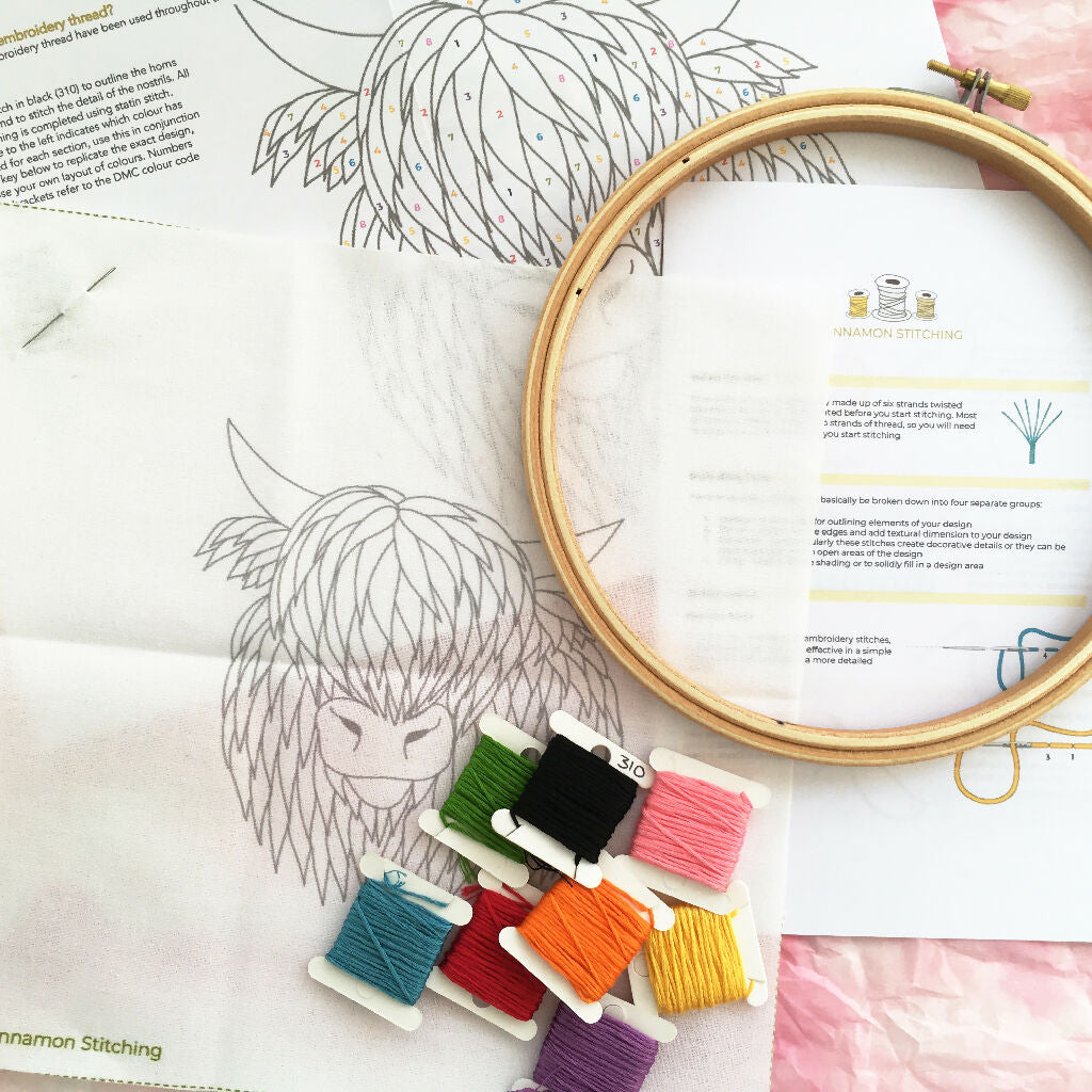Highland Cow Embroidery Kit from Cinnamon Stitching