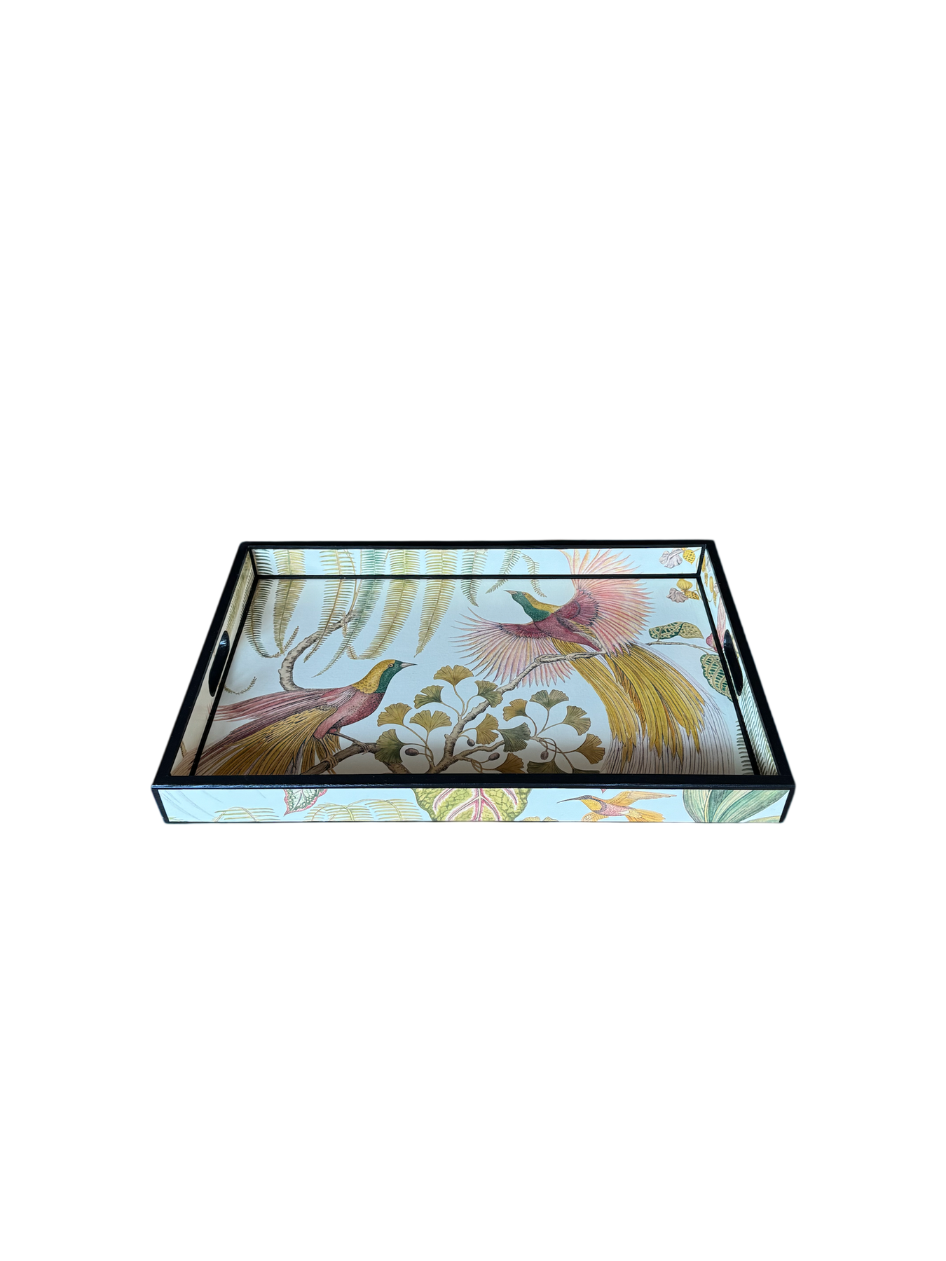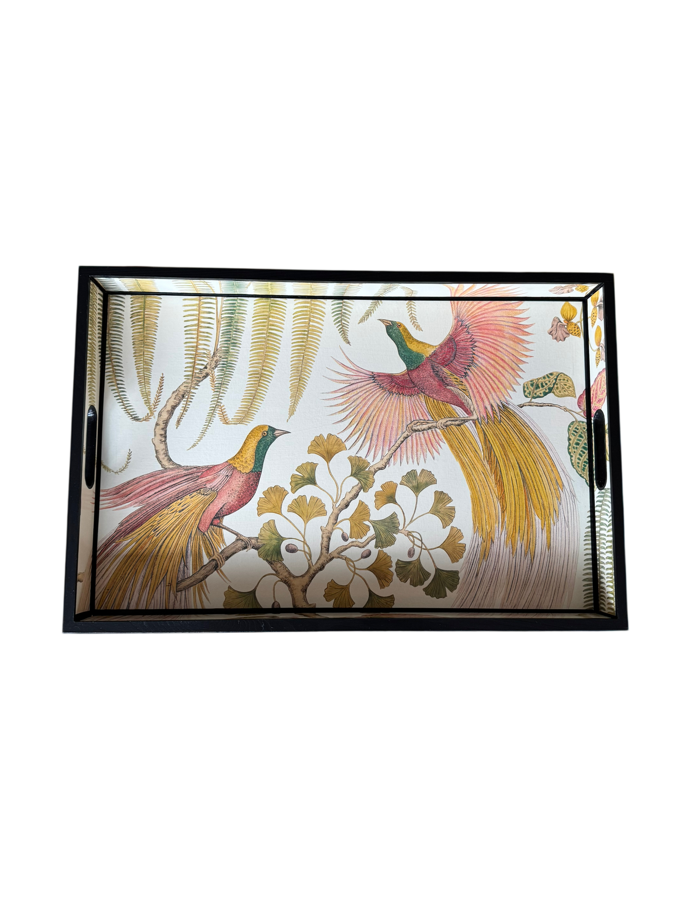 You elevate your space with this luxury handmade pinewood tray, featuring Birds of Paradise in rich olive, finished with bold black trim. Expertly decoupaged and sealed for a satin finish, it’s designed for everyday use as a striking, functional centrepiece.