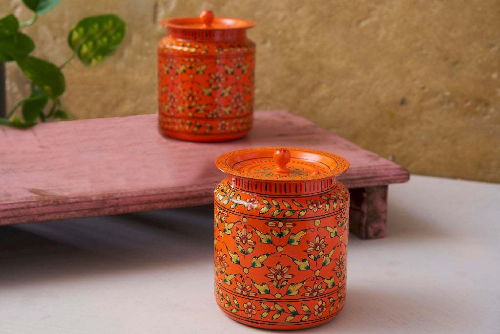 These decorative nesting boxes with lid are painted with a beautiful Indian-inspired flower pattern.