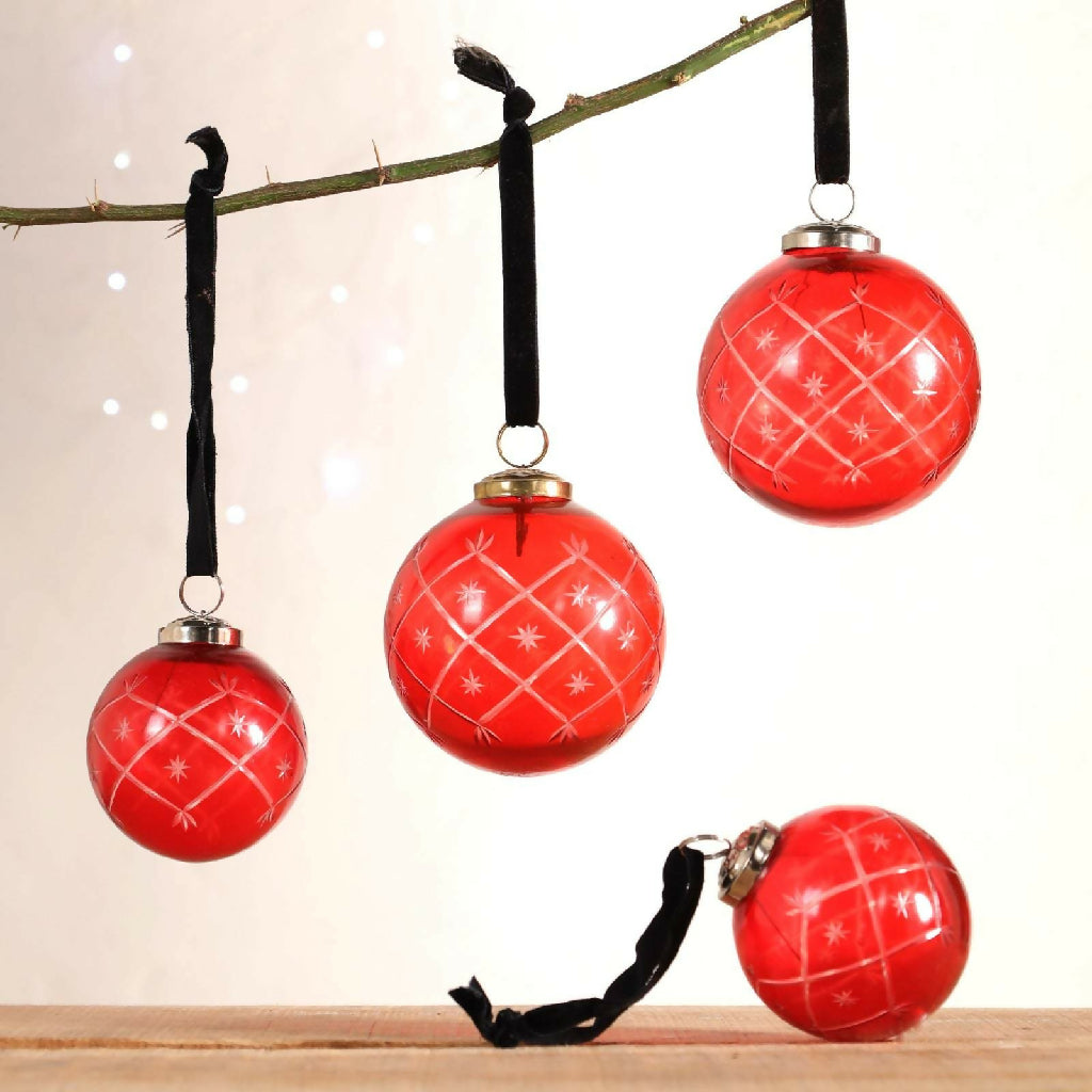 This set of two red baubles combines eco-friendly materials with festive charm.