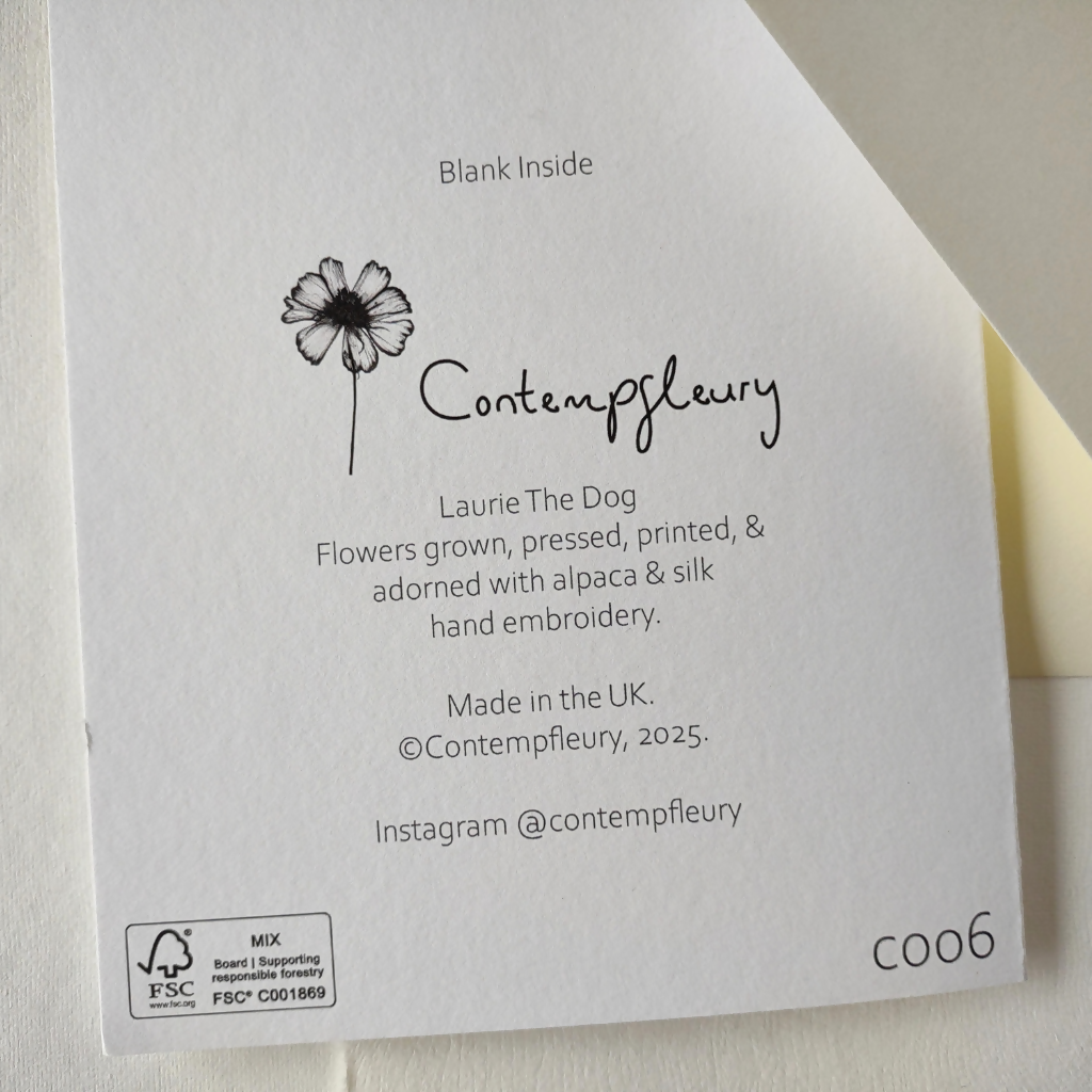 Made from a sustainable, luxurious, 350gsm, matt card, we hope Laurie will stick around for a while; She loves it when you keep her!