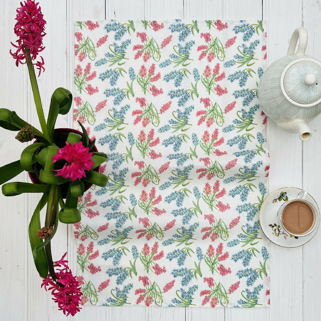 A beautiful 100% linen Tea towel featuring Lottie’s hand-drawn hyacinth design will be sure to brighten up your home.